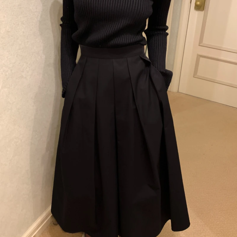 REALEFT Vintage Women’s Pleated Skirts 2025 New Spring Summer Korea Style High Waist Solid Straight A-line Midi Skirts Female