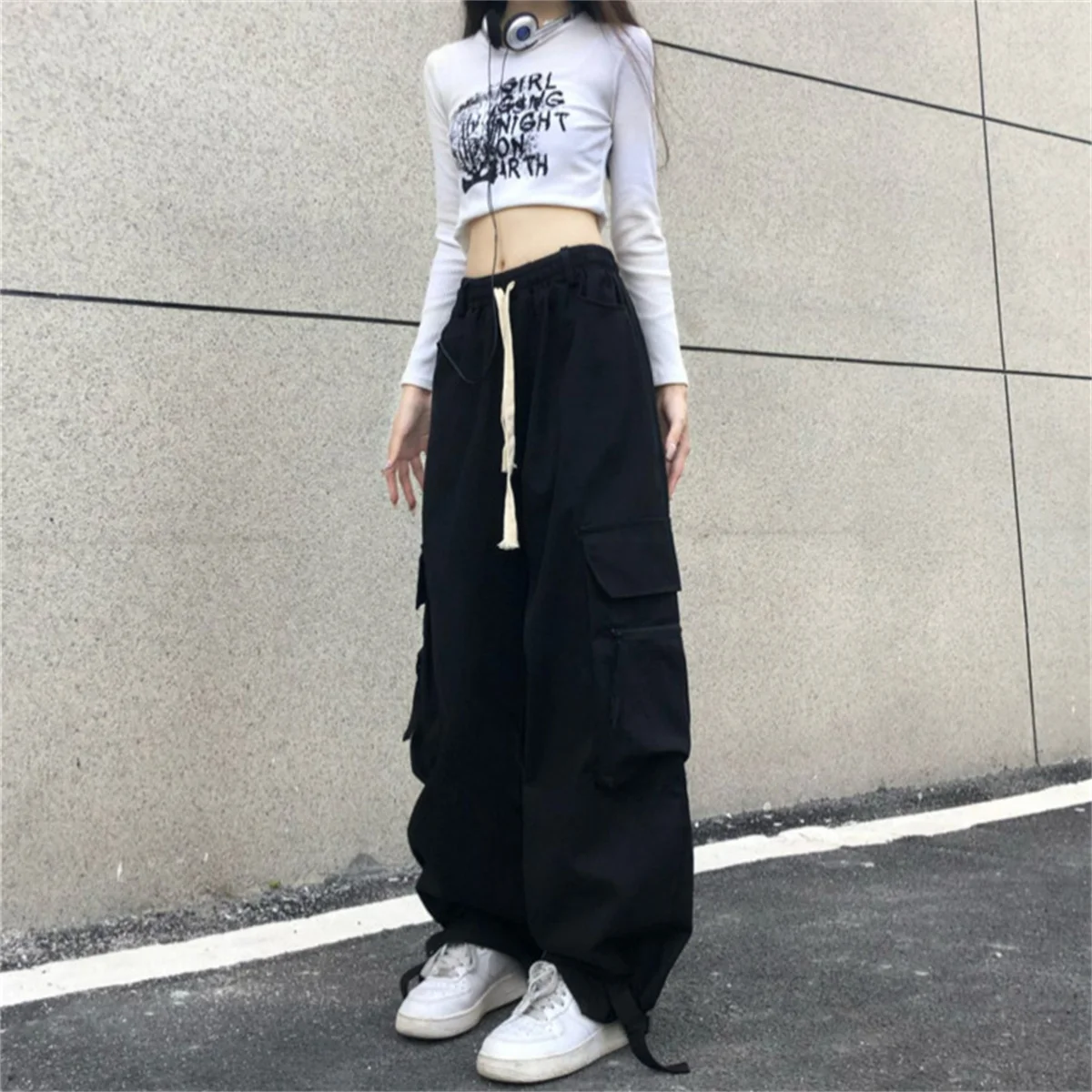 Red Cargo Pants Women Gothic Joggers High Waist Loose Female Hip Hop Trousers Korean Punk Pants Funny Capri Femme Sweatpants