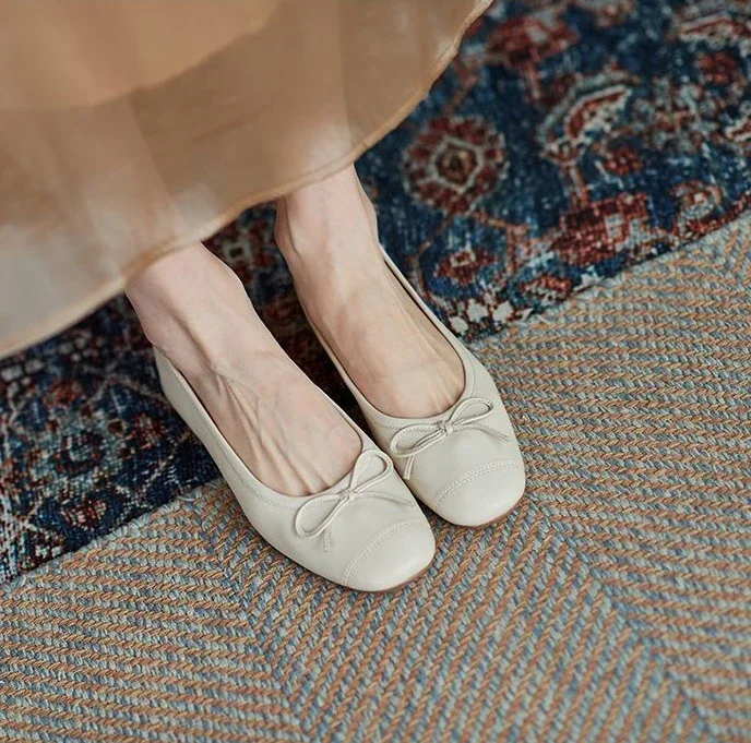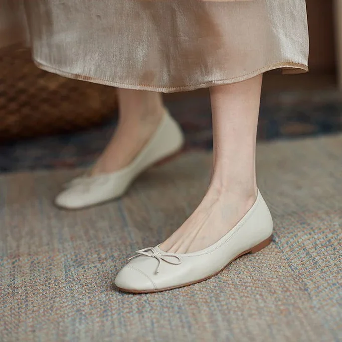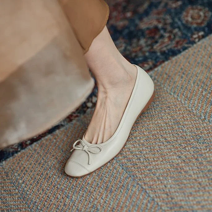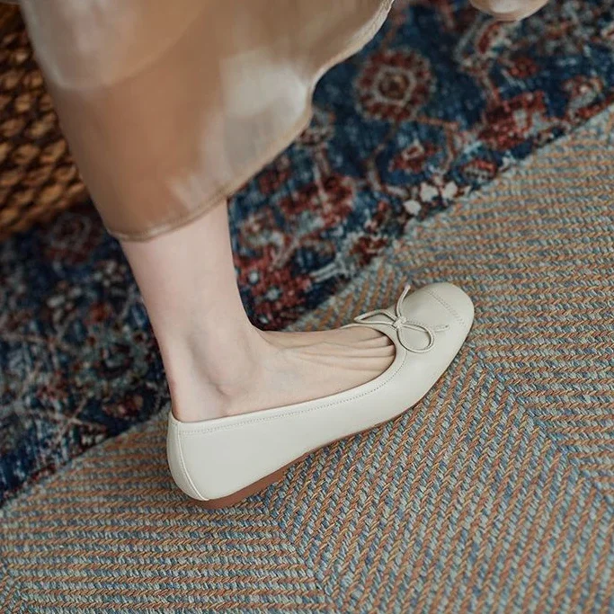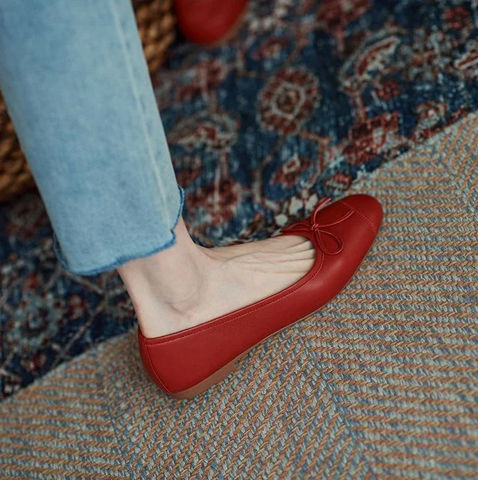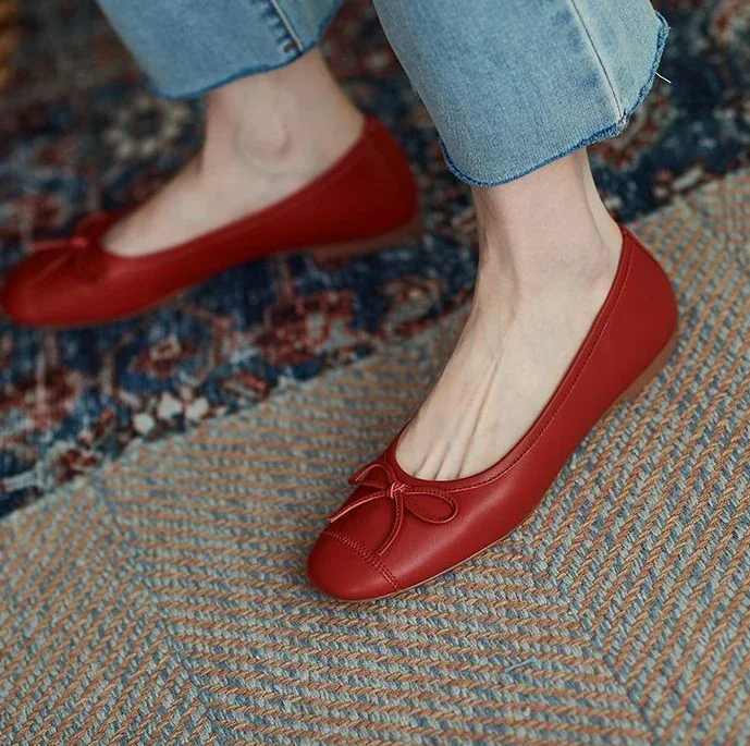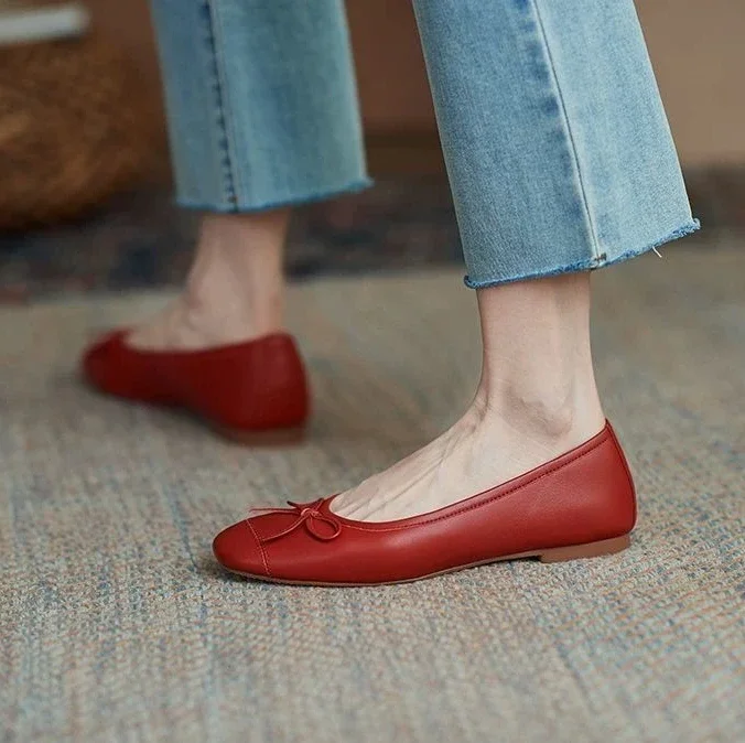 Red With Bow Luxury Leather Casual Kawaii Flat Cute Moccasins Flats Ladies Footwear Women’s Shoes Round Toe Trend Chic Point Y2k