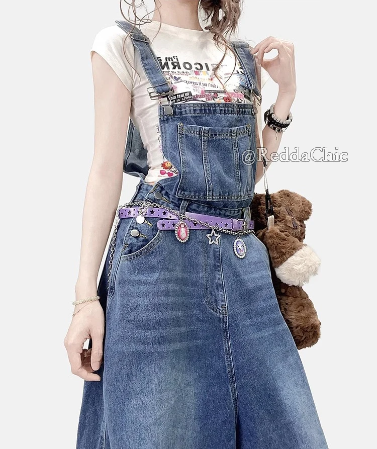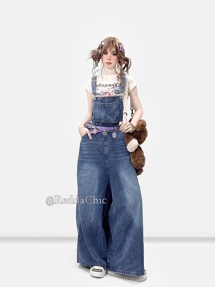 REDDACHiC Women Long Jeans Jumpsuit Loose Fit Adjustable Straps Bib Pockets Straight Leg Baggy Denim Overalls Korea Streetwear