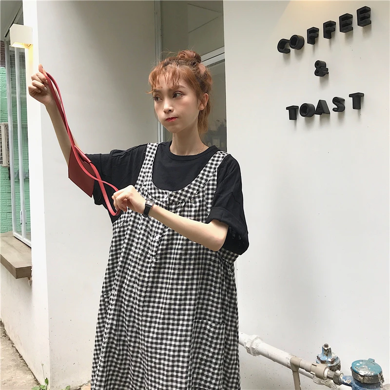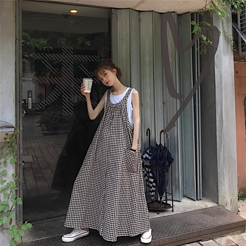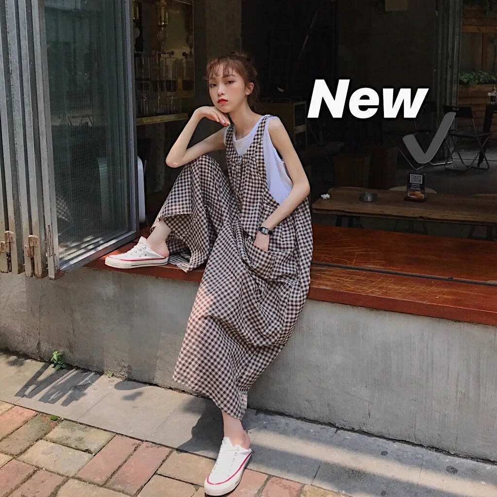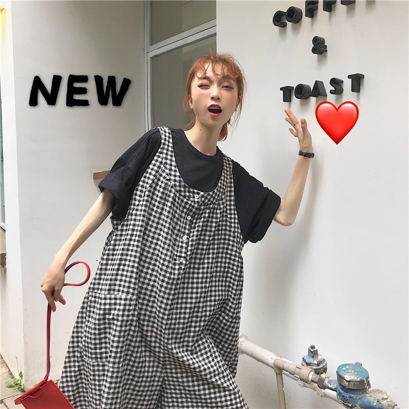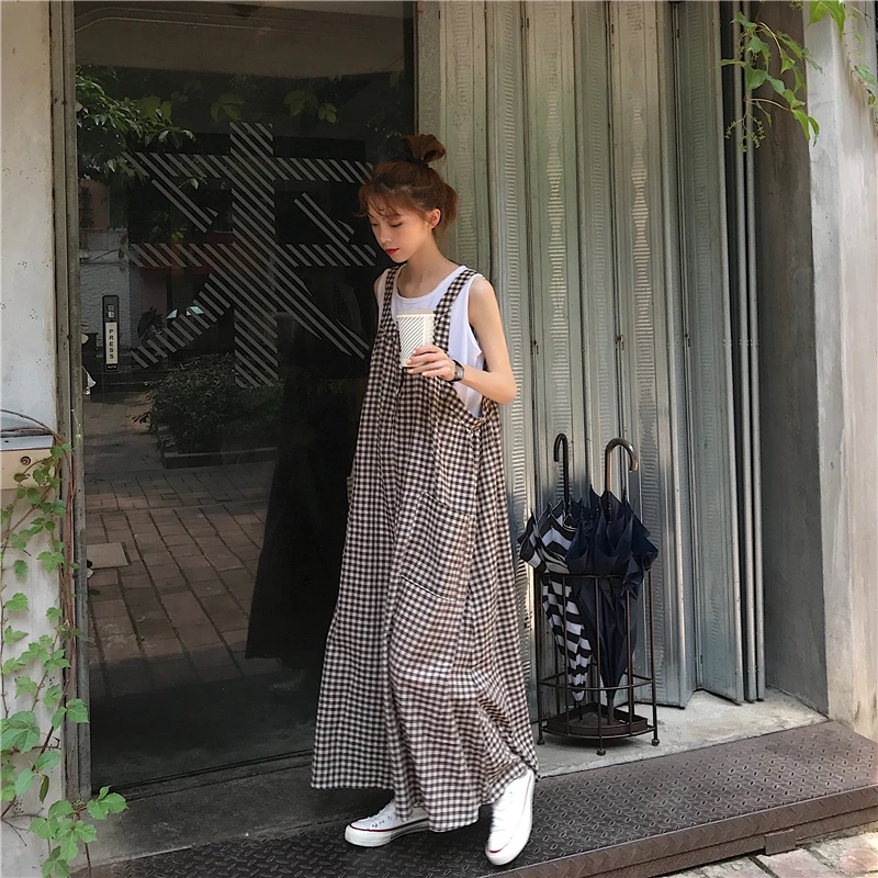 Retro Japanese Plaid Workwear Overalls Women Summer Loose Casual Sli Straight Leg Wide Leg Jumpsuit Trendy High Waist Nin…