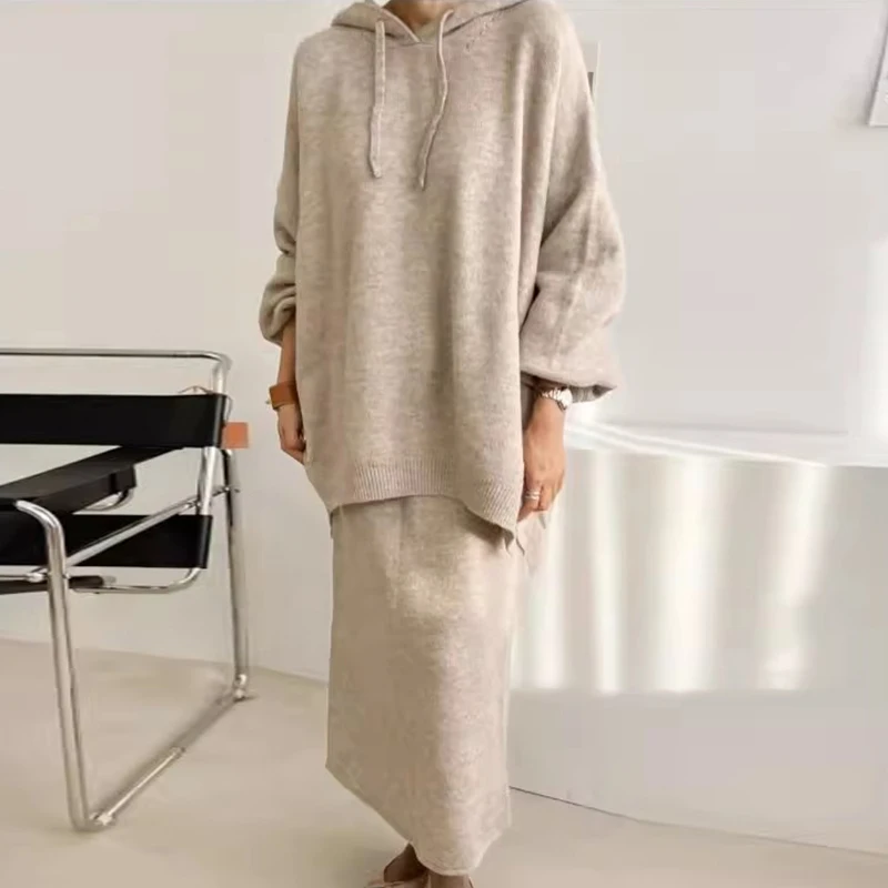 Retro Lazy Sle Long Sve Knitted Sweater And f Skirt Set Autumn Winter Faion Loose Fit Two Piece Women’s Ensemble