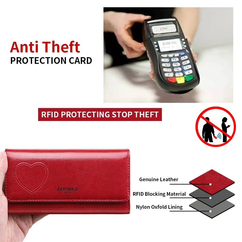 RFID anti-theft brush and demagnetization long handbag, large capacity integrated card bag, multi-functional wallet, leather cow