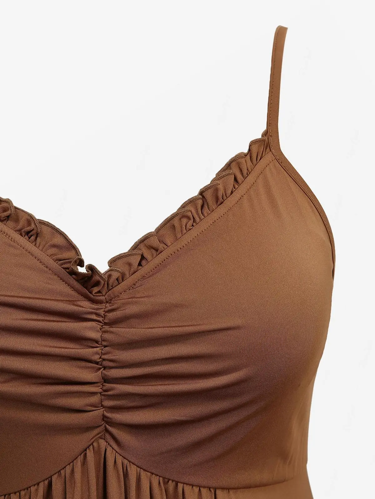 Featurel–Elegant cami dress set outfits, midi dress, high waisted dress, scoop neck dress, a line dress, adjustable spaghetti strap dress, flowy dress, crop top set, 2pc outfits for women, high stretch fabric.
