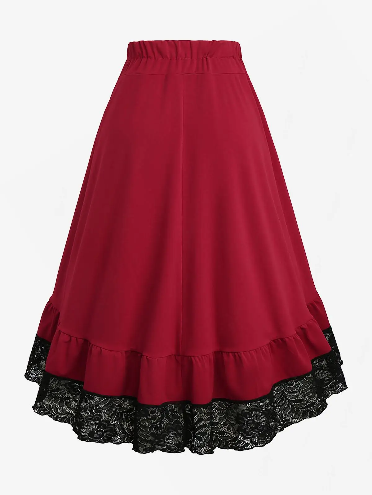 ROSEGAL Plus Size Skirts Women High Elastic Waist Gothic Floral Lace Trim Lace-up Cinched Two Tone Patchwork A Line Skirt