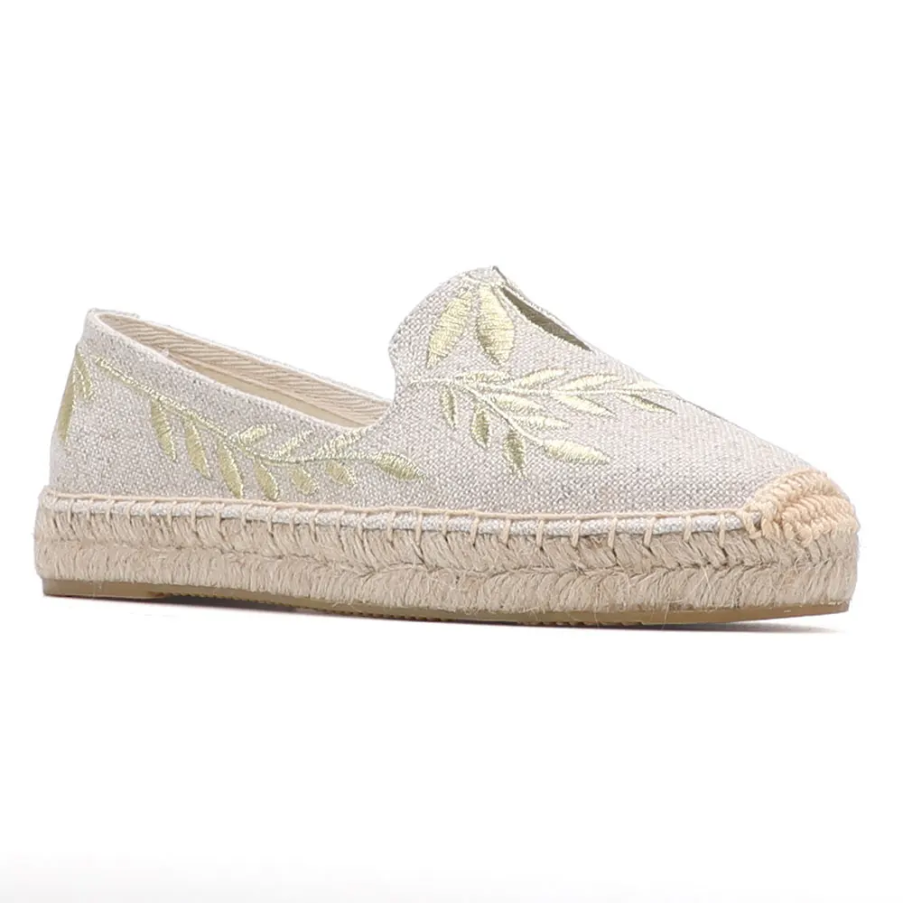 Round Toe Womens Espadrilles Flat Shoes 2022 Hot Sale Real Platform Rubber Slip-on Casual Floral Zapatillas Mujer Sapatos Hemp