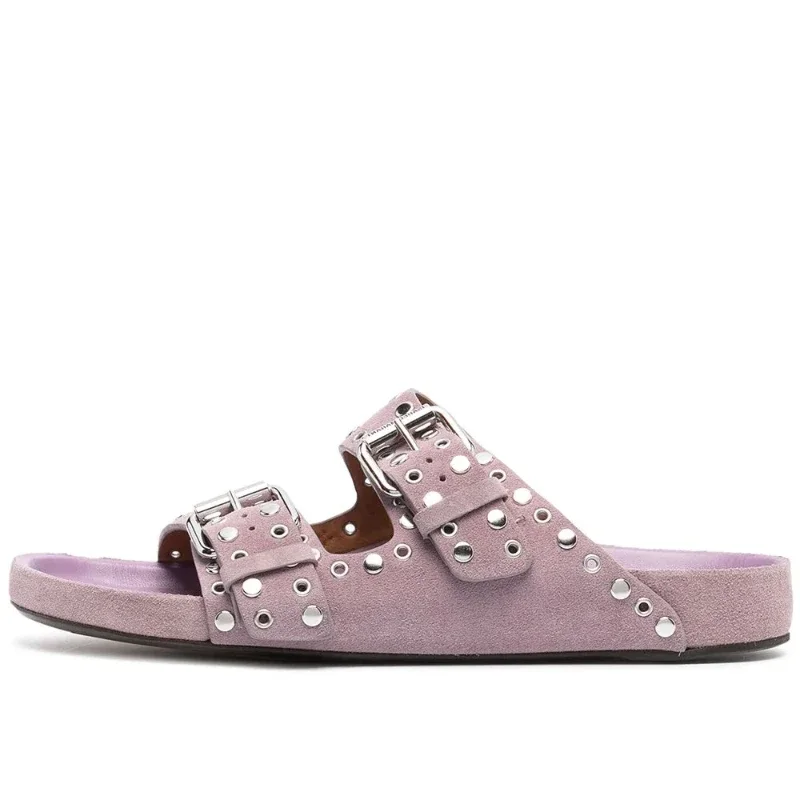 Sandals Woman Summer 2024 Beach Open Toe Slippers Flat Shoes Sandals Unisex Buckle Rivet Decoration Slip On Roman Big Size 43