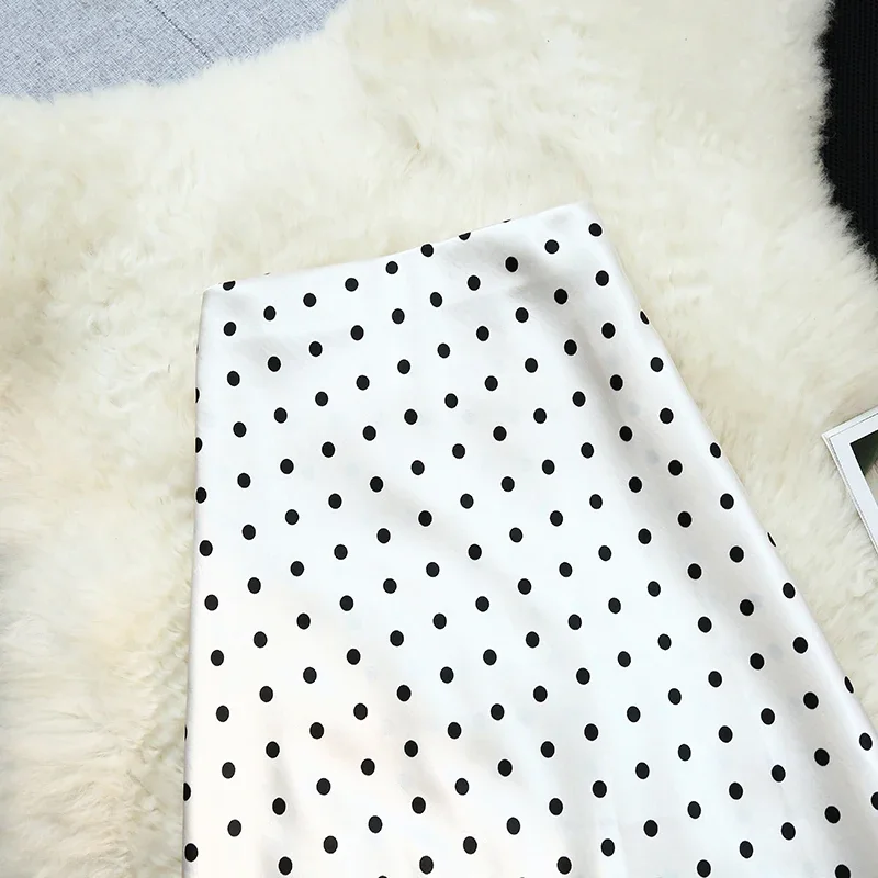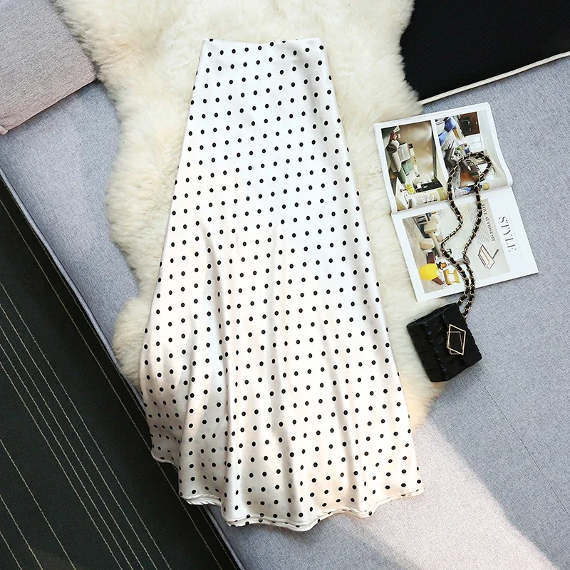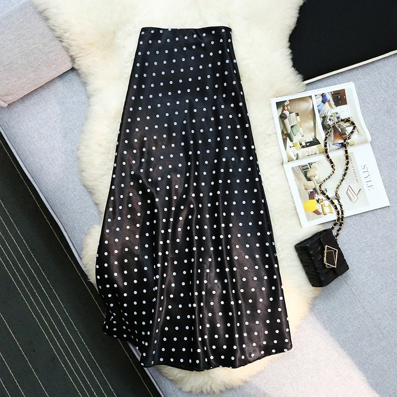 Seoulish Vintage Polka Dot Satin Mermaid Skirts for Women 2025 New Spring Summer High Waist Casual Mid Length Women’s Skirts