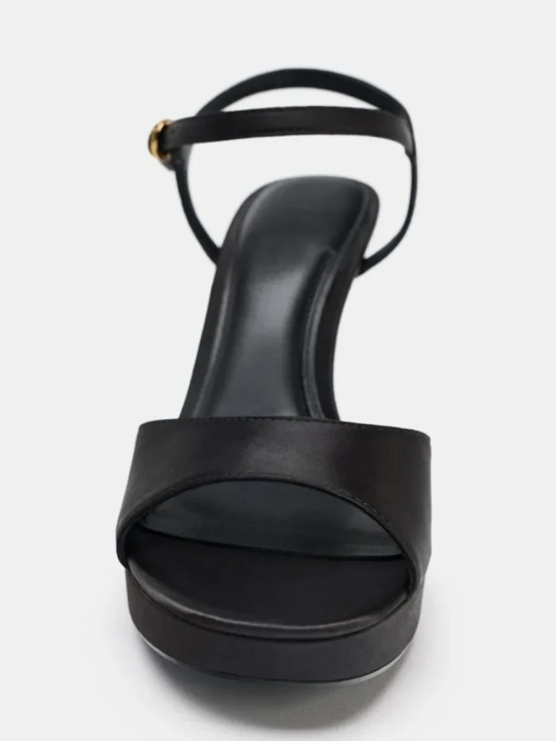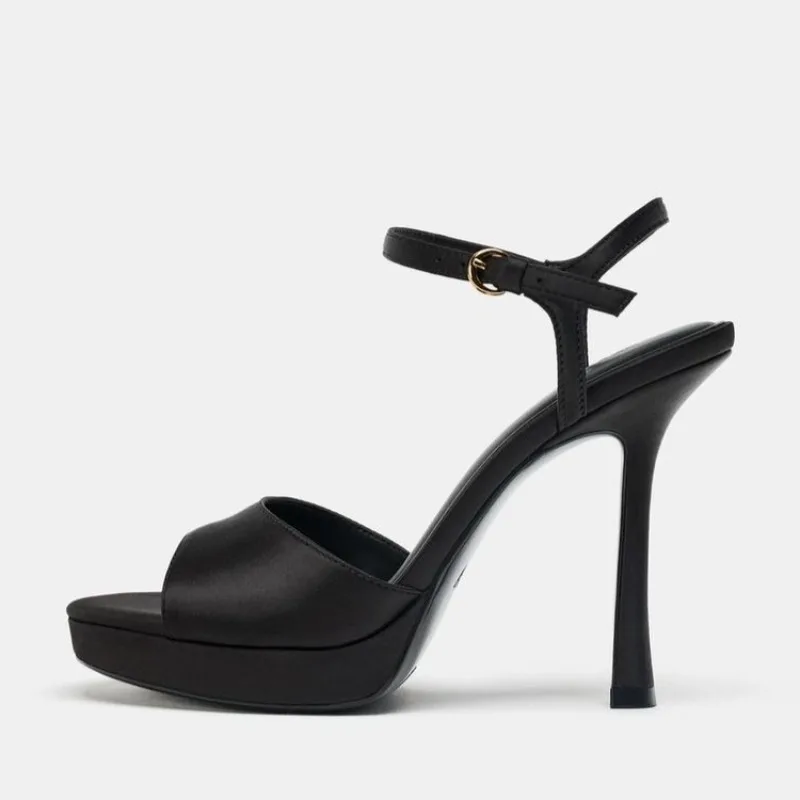 Sexy Platform High Heels Women Silk Peep Toe Ankle Strap Sandals for Women Balck Mature Fashion Designer Party Dress Shoes
