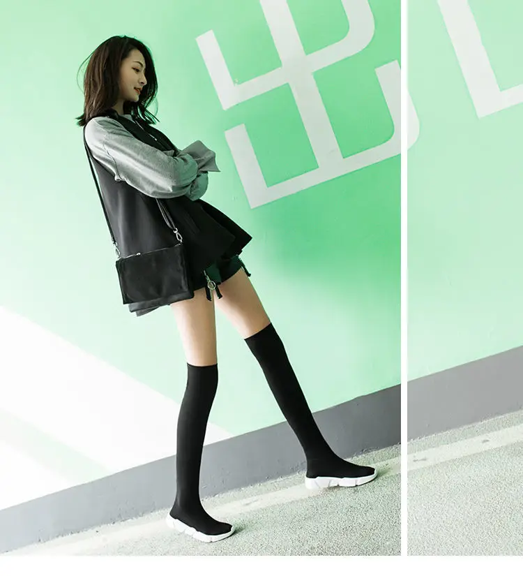 Sexy Sock Boots Knitting Stretch Boots Warm High Heels For Women Fashion Knee High Boots 2023 Spring Autumn Women Booties Female
