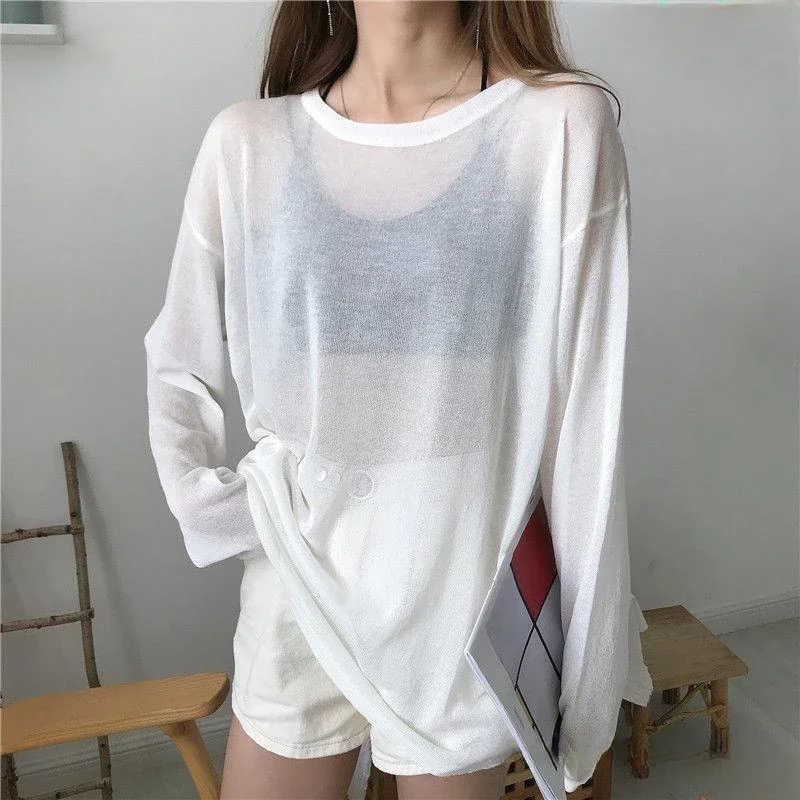 Sheer T-shirts Women Loose Korean Fashion Summer Sun-proof Leisure Clean Fit All-match Long Sleeve Breathable Lazy Ulzzang 2XL