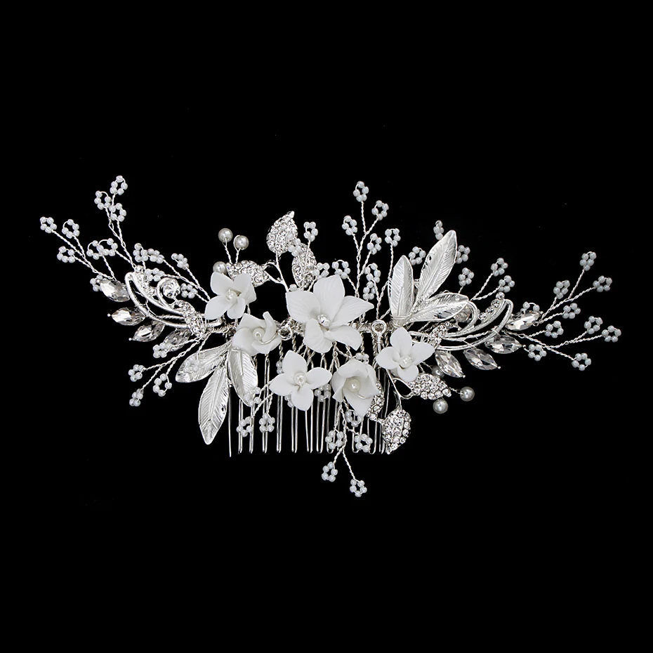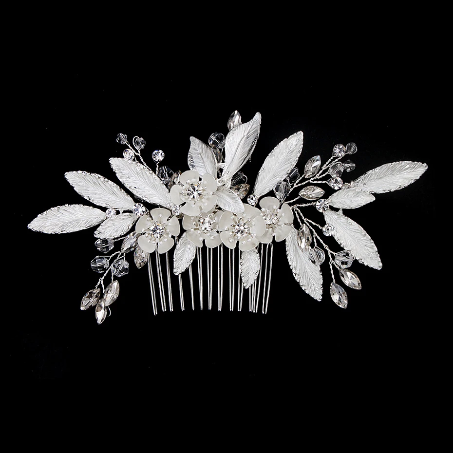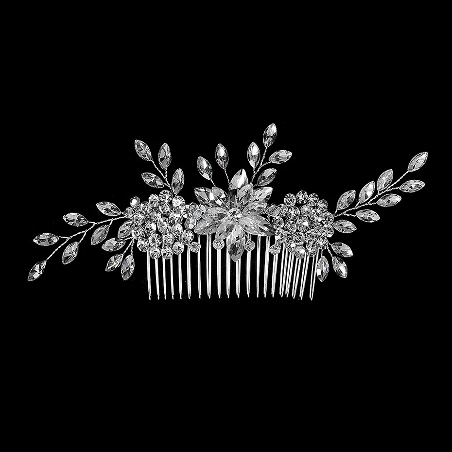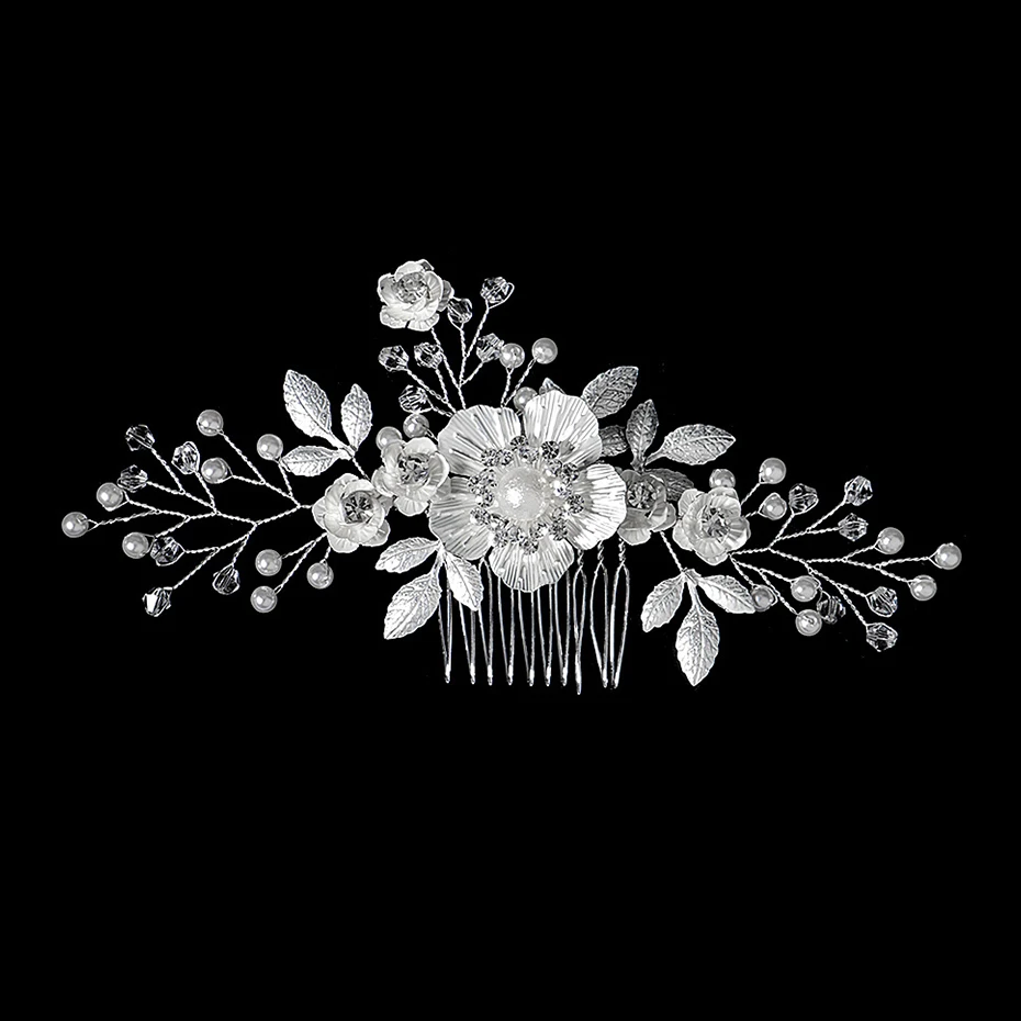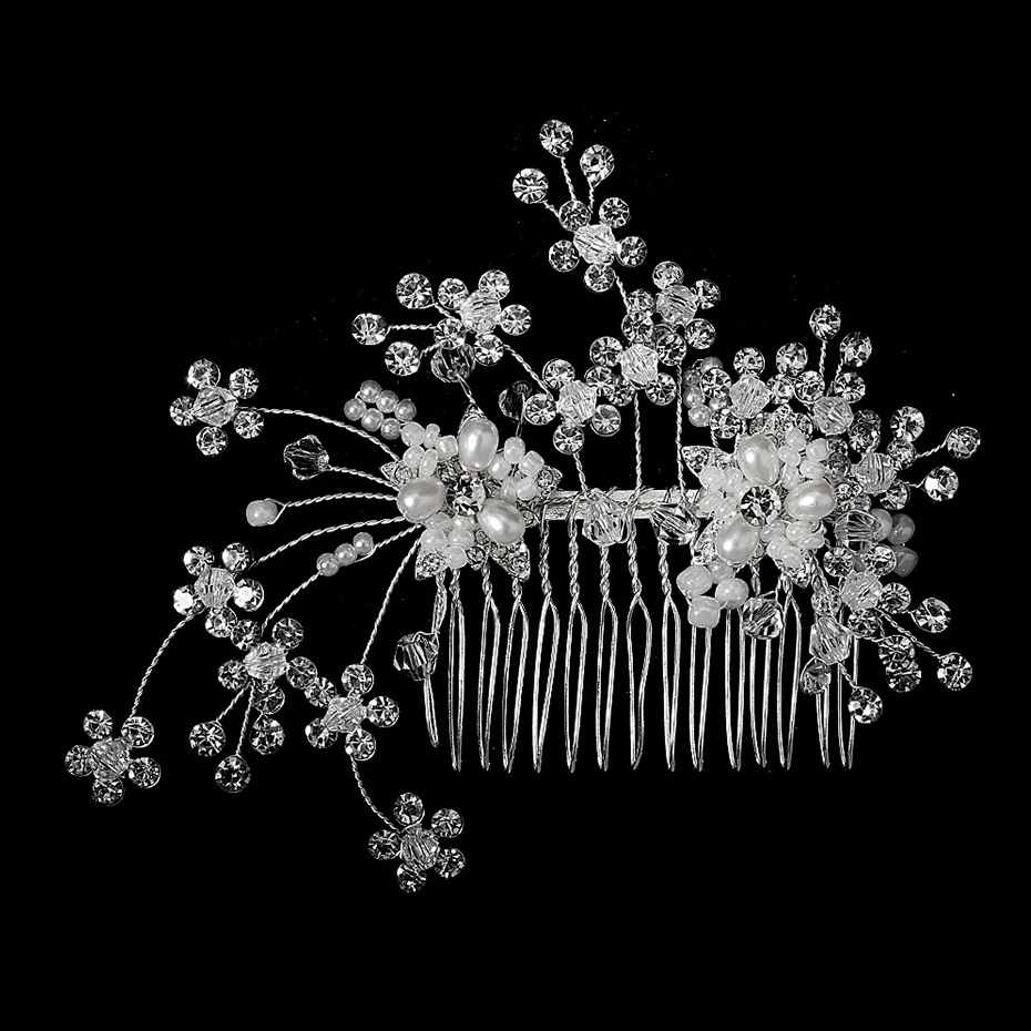 Silver Color Rhinestone Wedding Hair Comb Pearl Crystal Hair Accessories for Bride Ornament Prom Bridal Flower Headpiece Jewelry