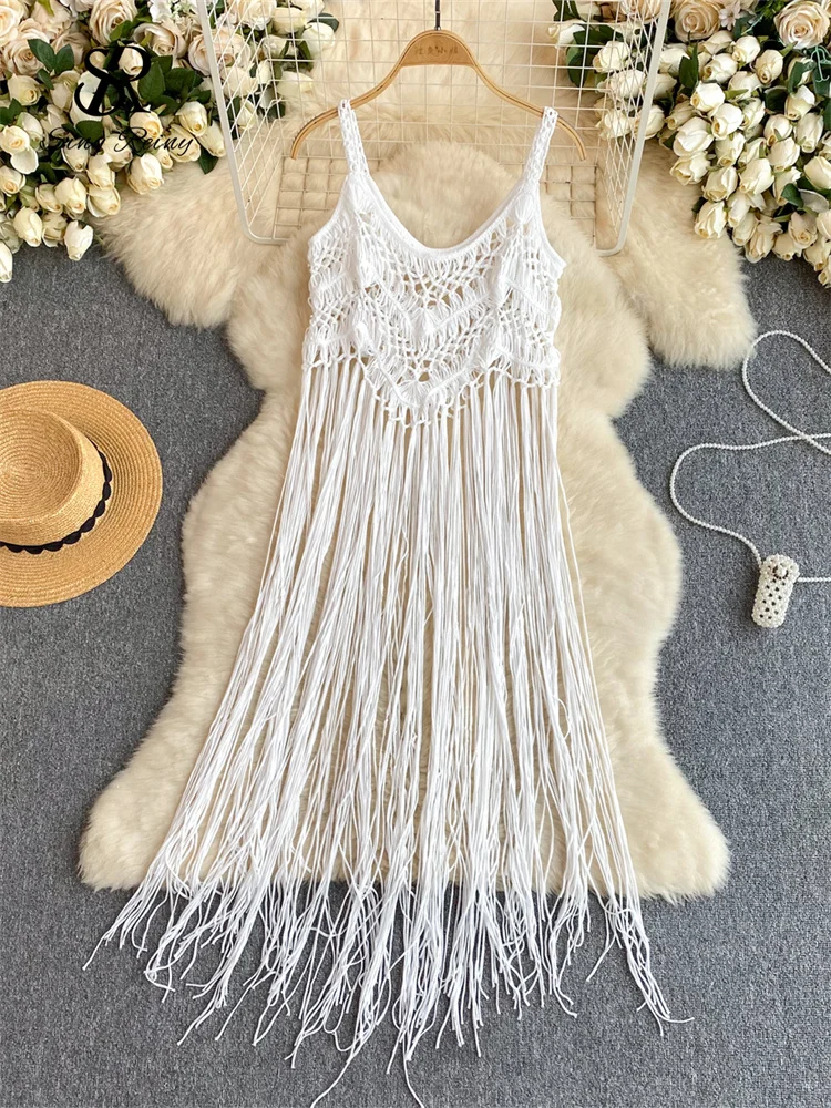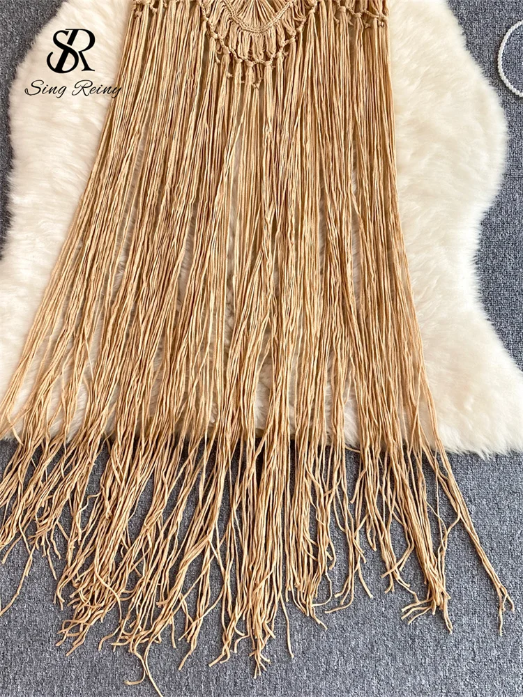 SINGREINY Retro Knitted Camis Bohemian Vacation Beach style Summer Tank 2024 New Women Strap Sleeveless Long Tassel Tops