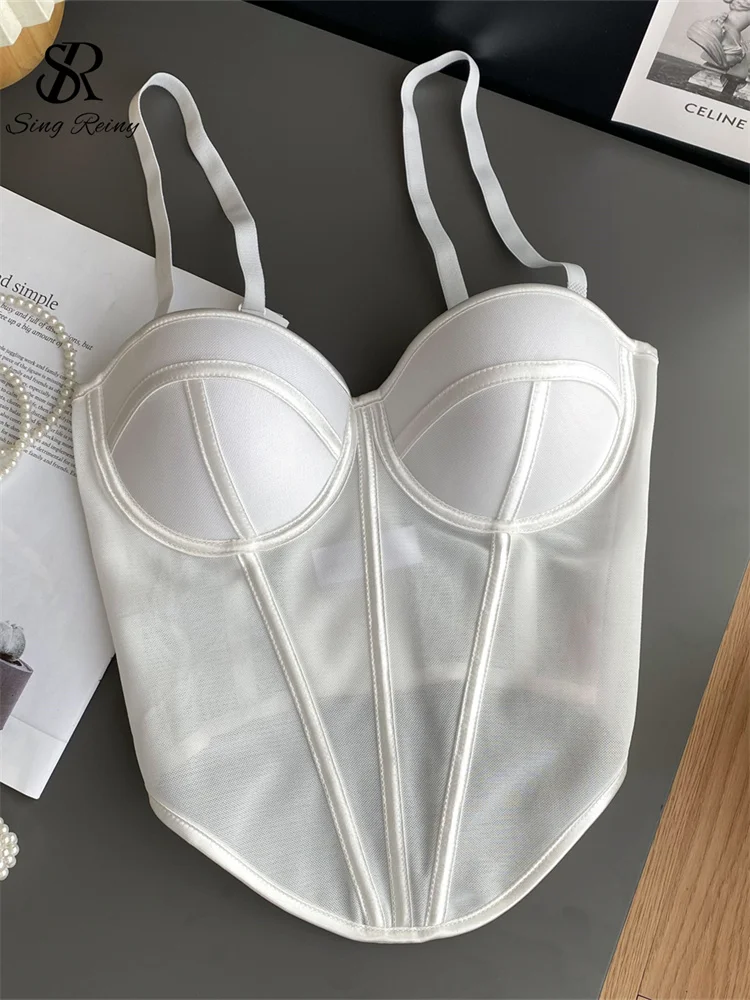 SINGREINY Sensual Irregular Sheath Corset Camisole Patchwork Backless Club Short Camis Fashion Ladies Streetwear Mini Sexy Camis