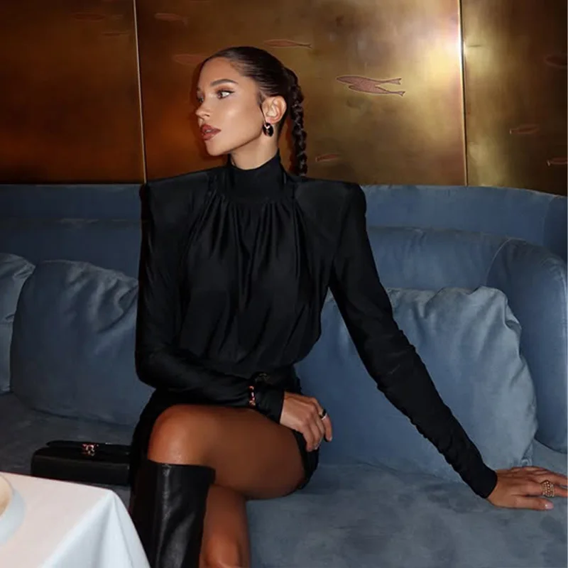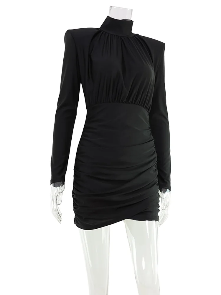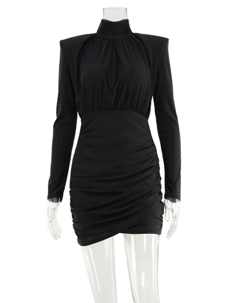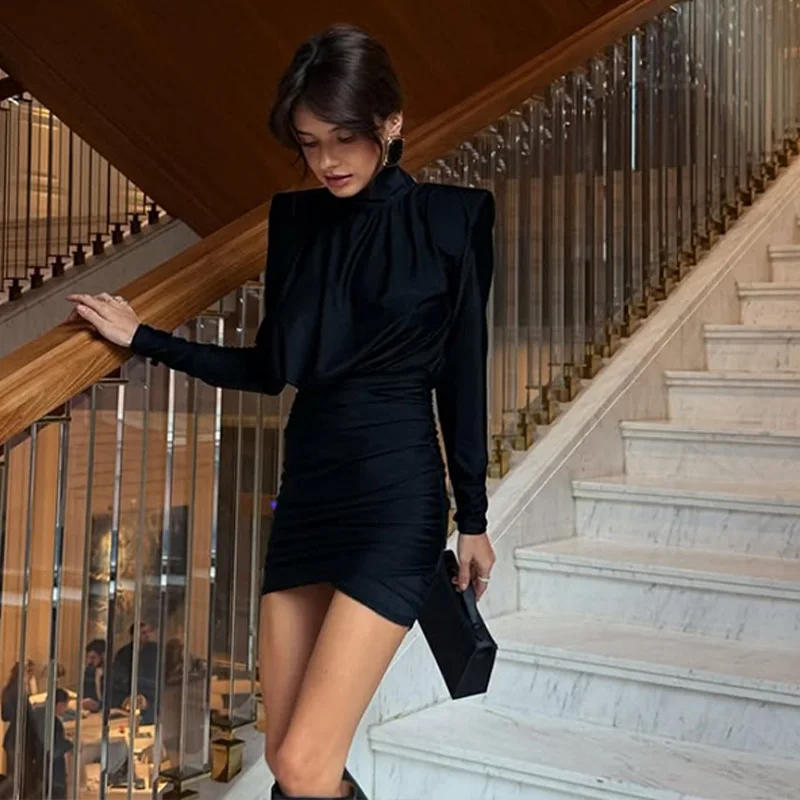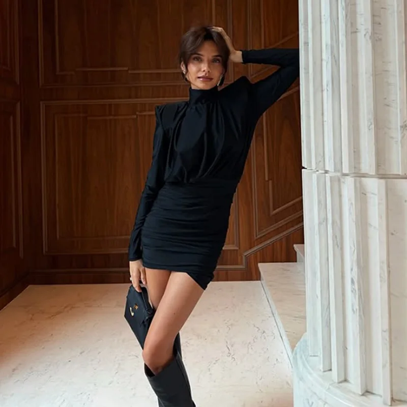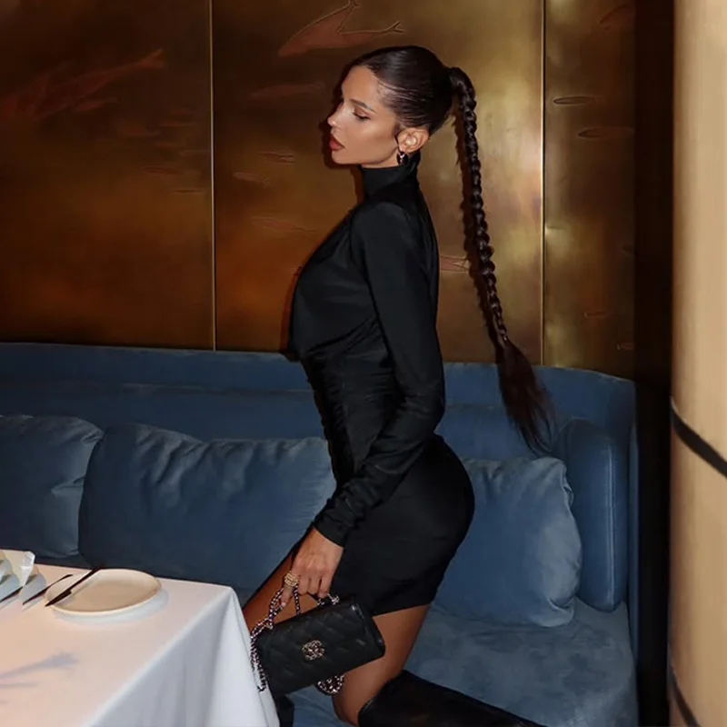 Solid Dresses For Women Fashion Sexy Streetwear Long Sleeves Turtleneck Sheath Mini Vestidos Robes Female Slim Fit Partywear