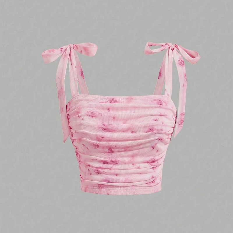 Solid Tie Shoulder Ruched Wide Strap Slim Fit Crop Top Women Clothing Summer 2025 Y2K Clothes Pink Backless Camis Top Streetwear