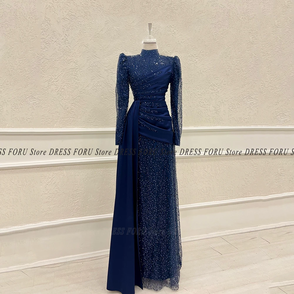 Sparkle Evening Dress Long Luxury For Woman Full Sleeve Muslim Wedding Party Floor Length Pleat High Neck Formal Pageant Fiesta