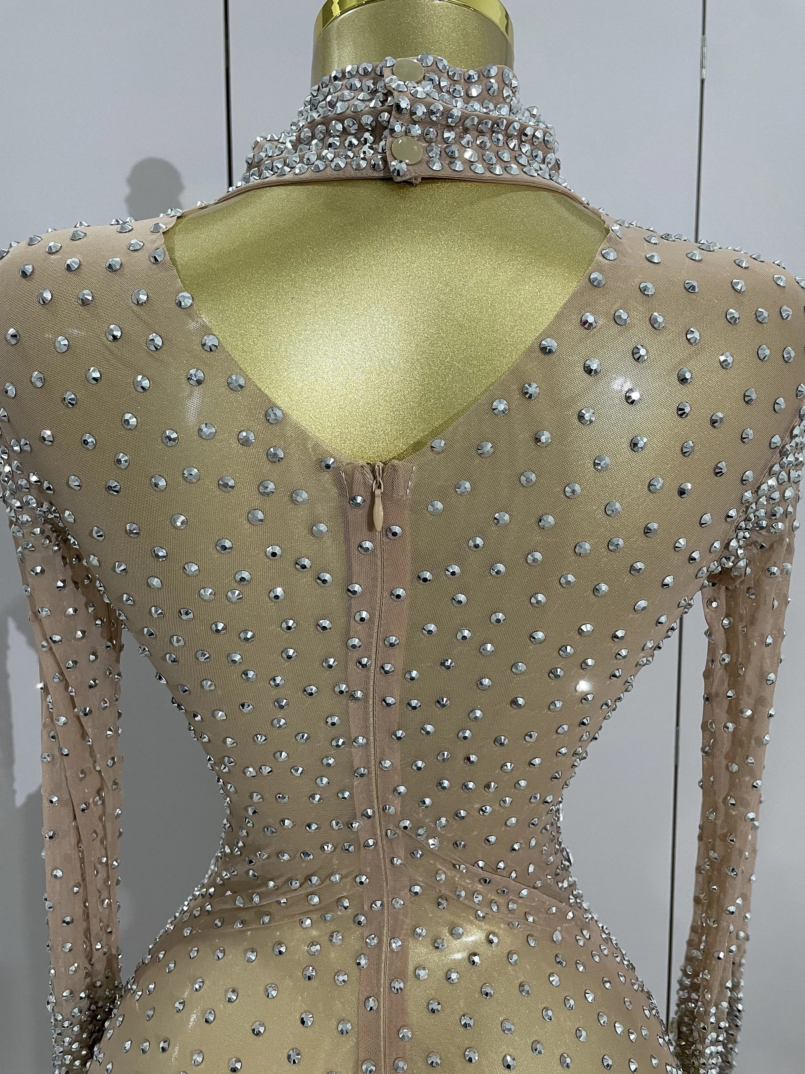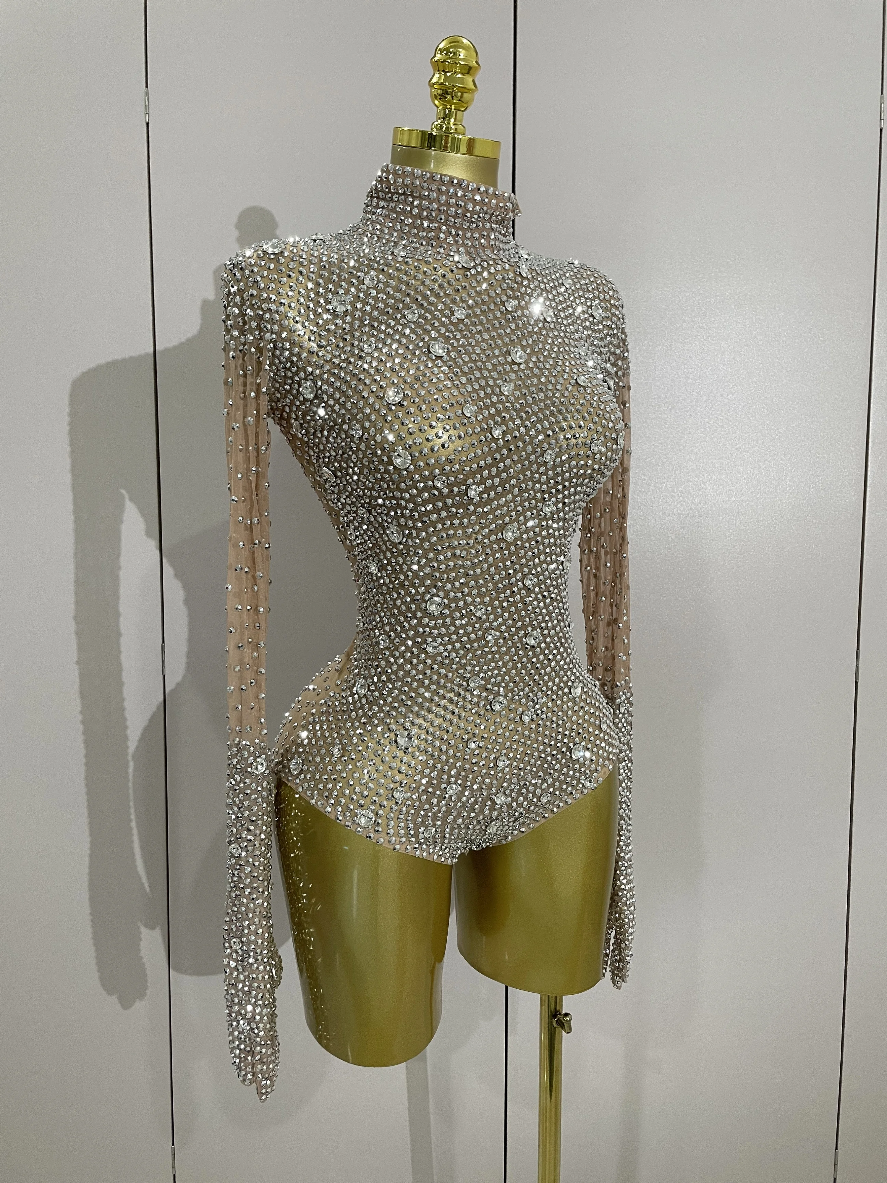 Sparkle Rhinestones Long Sleeve Gloves Stretch Bodysuits 2025 Women Evening Luxury Birthday Party Sexy Nightclub Stage Costumes