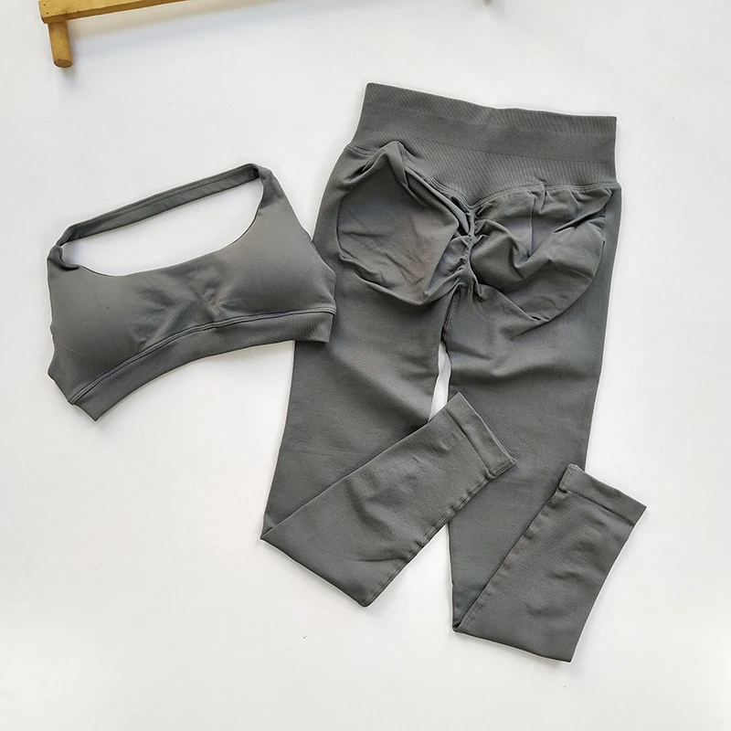 Sports Suit Women’s Running 2PCS Set Seamless Yoga Thin Straps Beautiful Back Fitness Bras Gym High-waisted Peach Leggings Sets