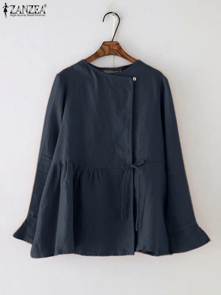 Spring Cotton Shirt 2024 ZANZEA Fashion Solid Lace Up Tops Tunic Casual Work Blusas Mujer Vintage Women Long Flare Sleeve Blouse