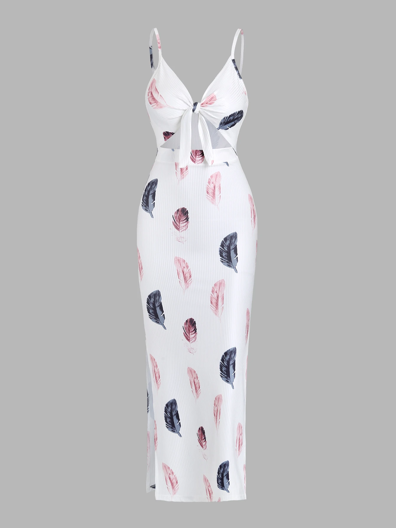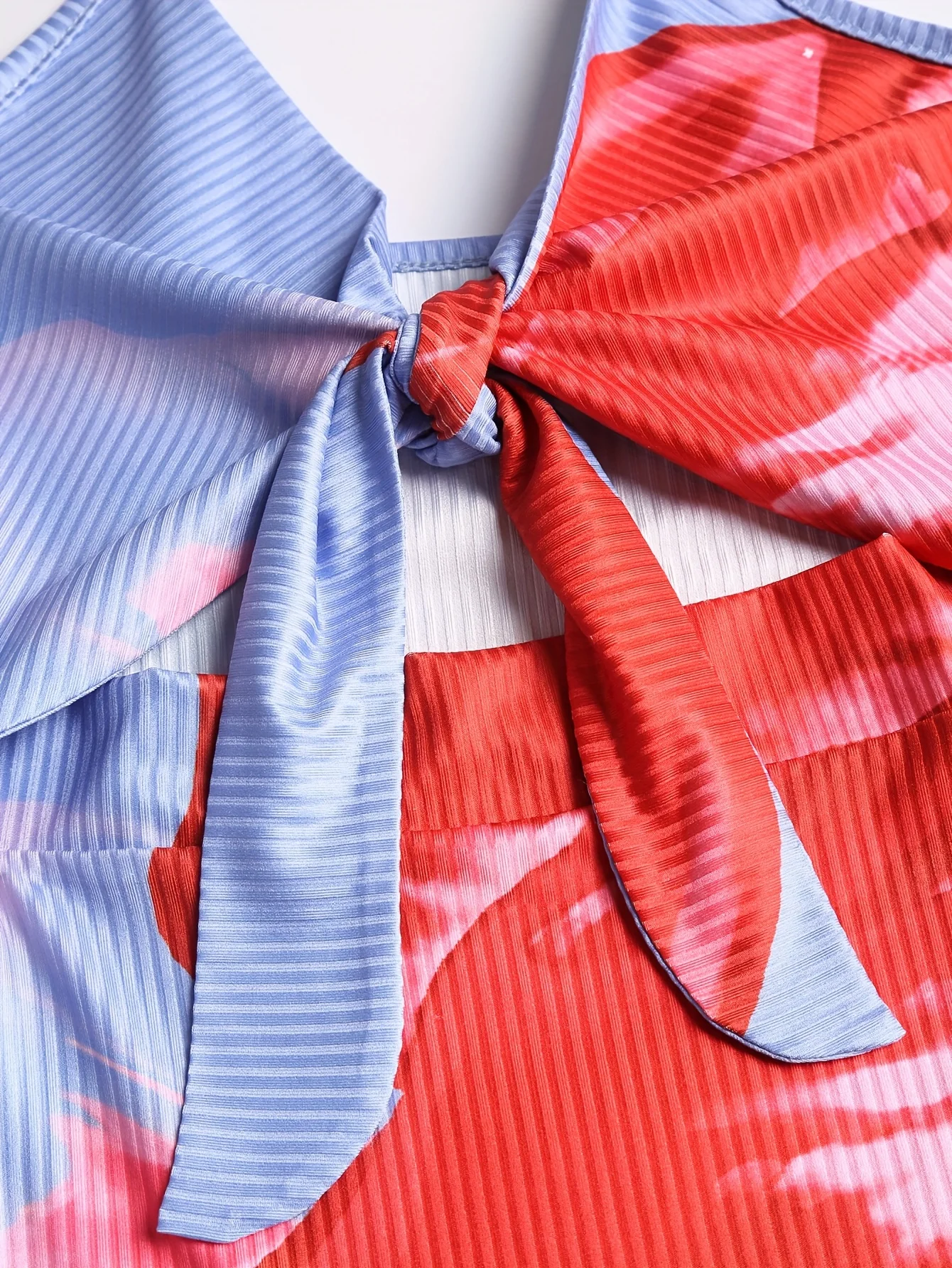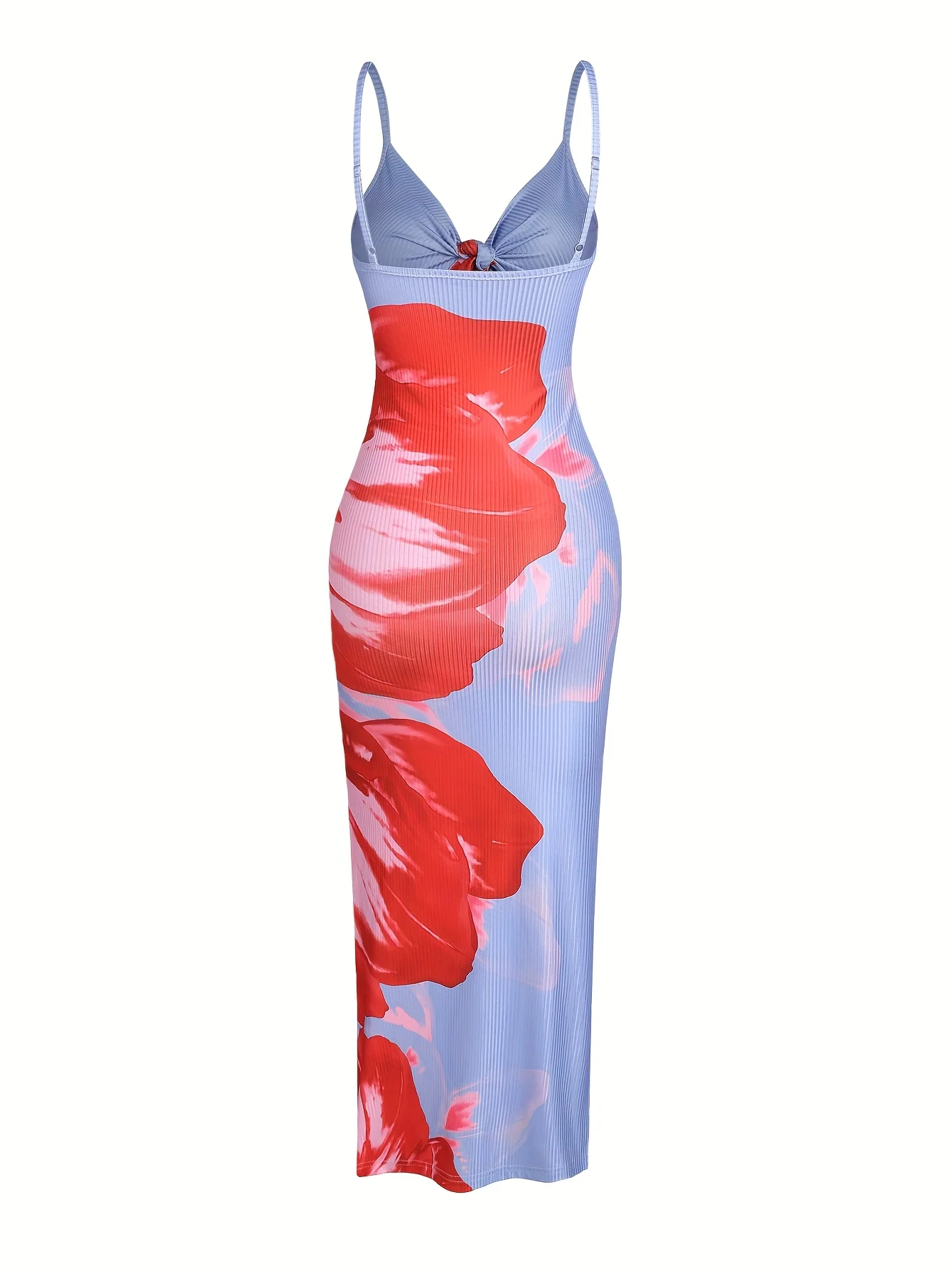 Spring/summer 2024 European and American fashion explosion printing knit simple sleeveless suspender dress with leaking back and