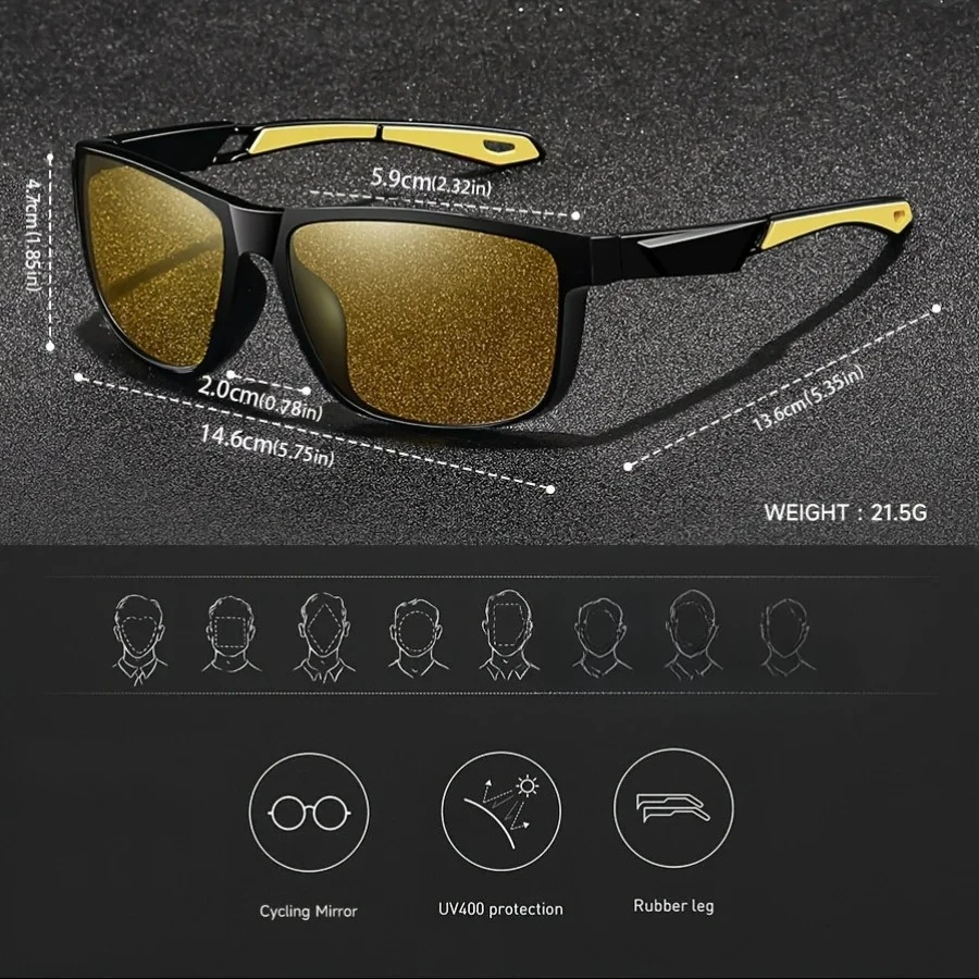 Square Yellow Night Vision Anti-Glare Goggles for Men Women Driving Fishing Beach Sunglasses Protection Polycarbonate Glasses