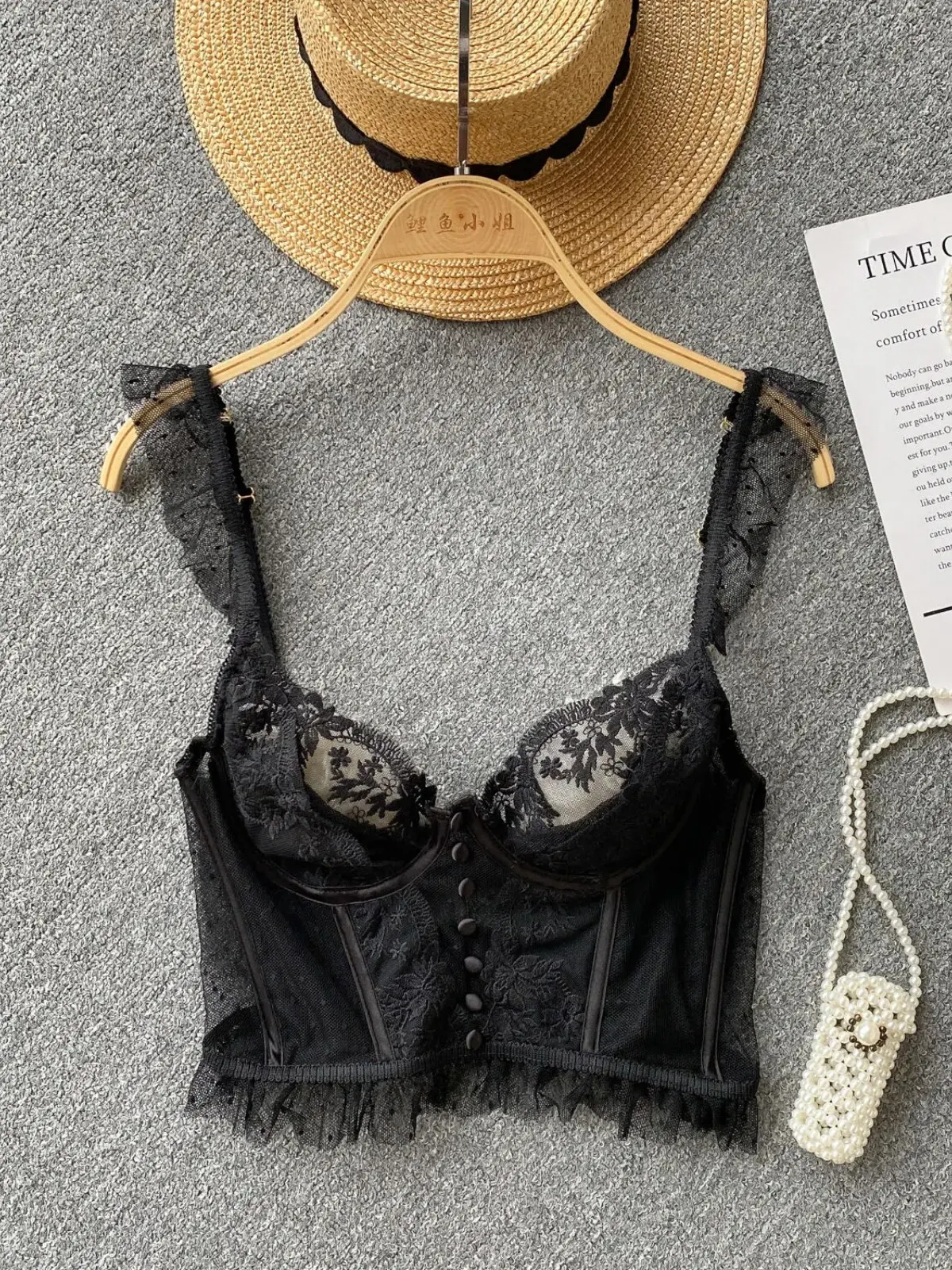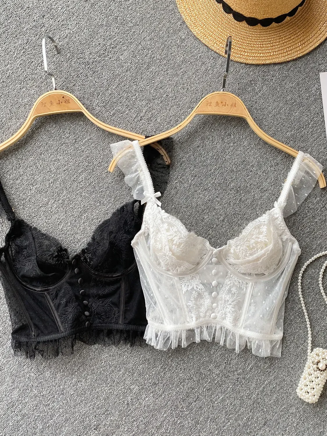 ssTss French Elegant See Through Mesh Lace Tank Top for Women Summer Sexy Black White V Neck Strap Slim Fit Vest Bras Tops