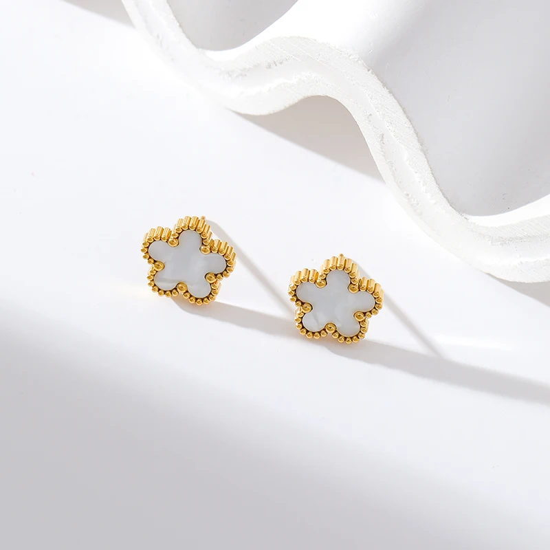 8 reviews for Stainless Steel White Plum Blossom Plant Leaf Flower Set Reversible Necklace Earrings Bracelet Women Clover Jewelry