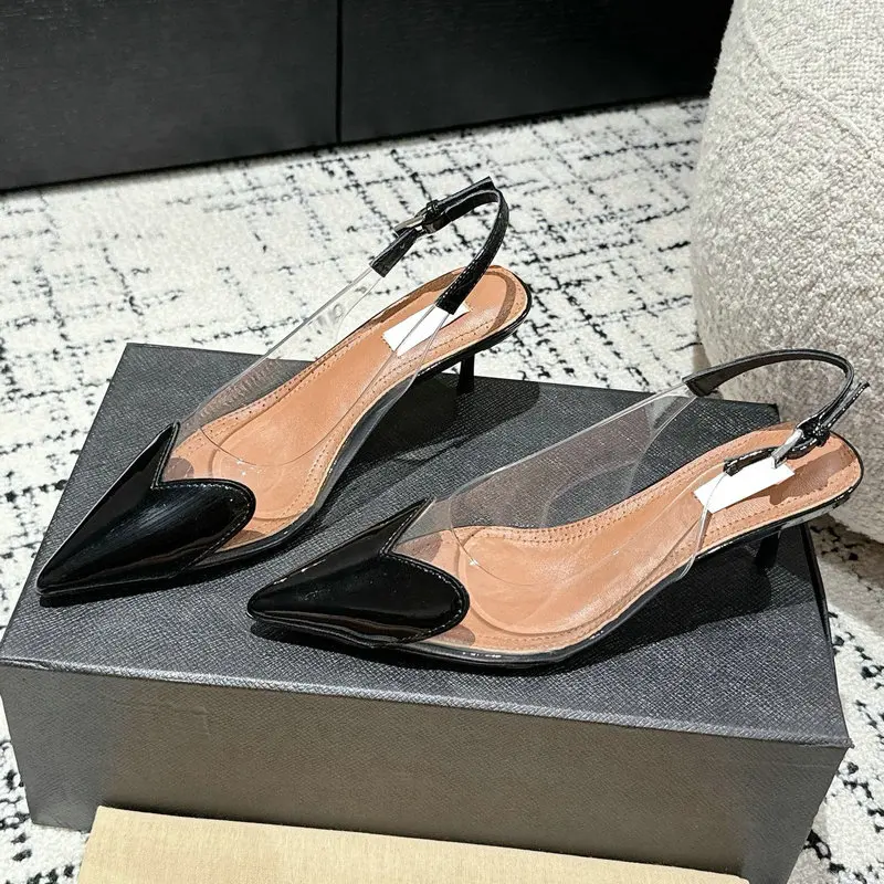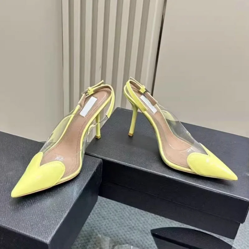 Star Style Fashion Transparent PVC Mixed-color Women Pumps Elegant Pointed toe Thin High heels Slingbacks Party Prom Shoes