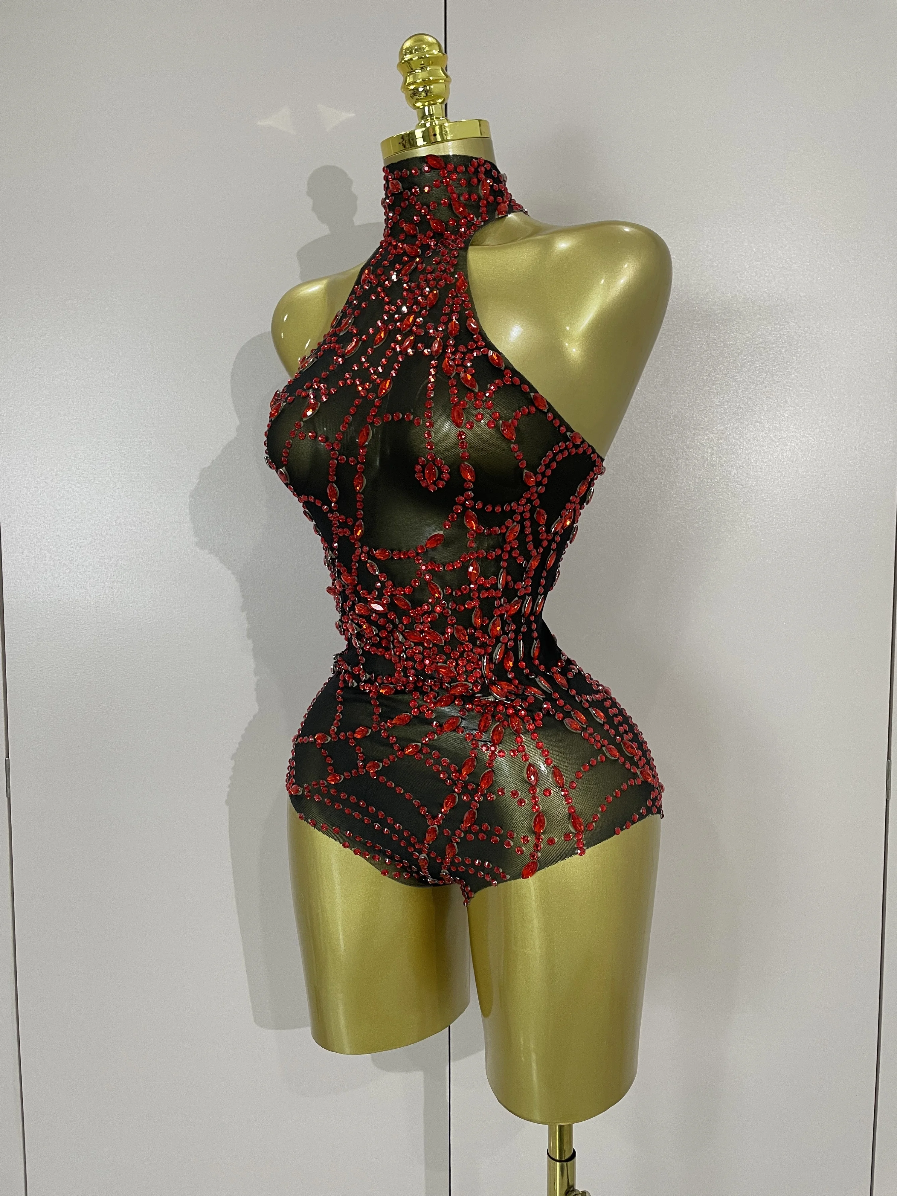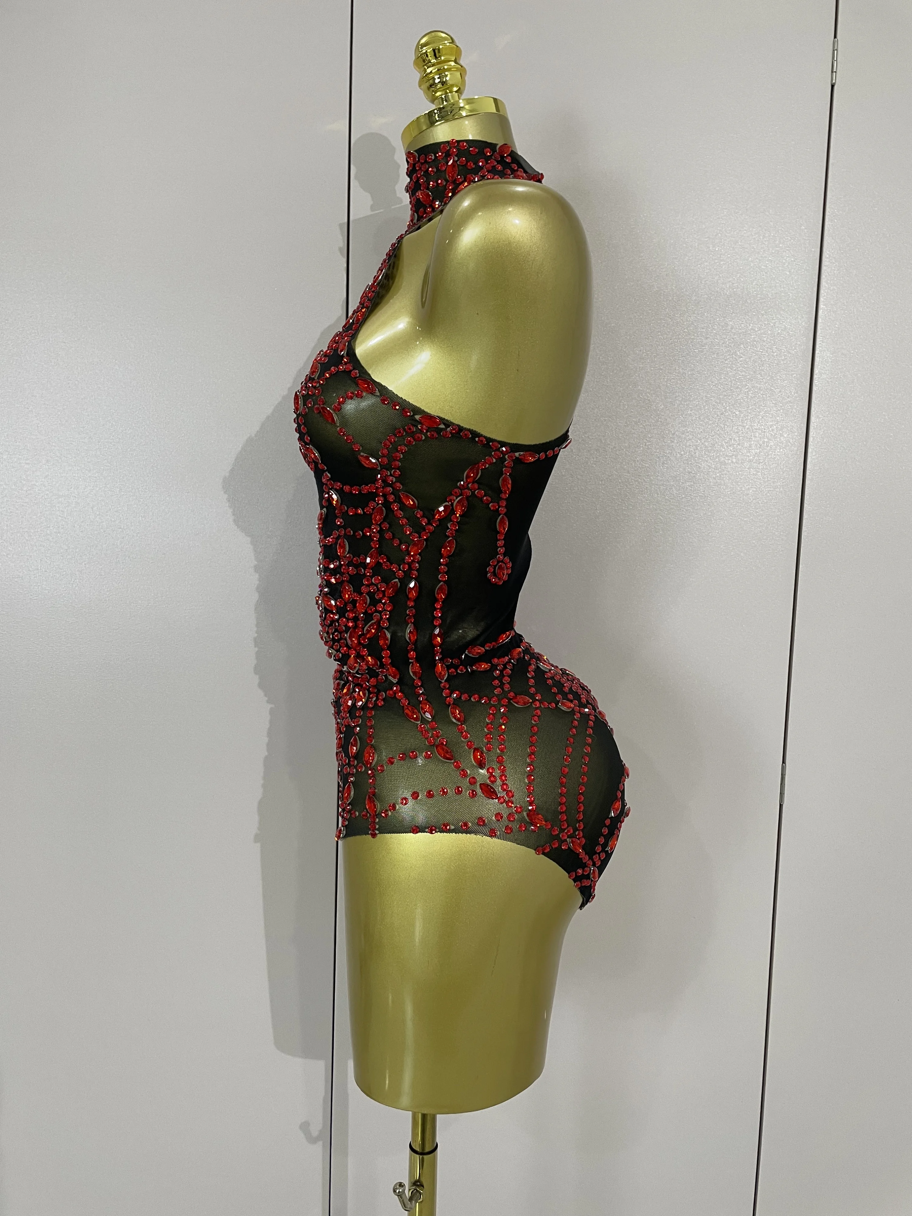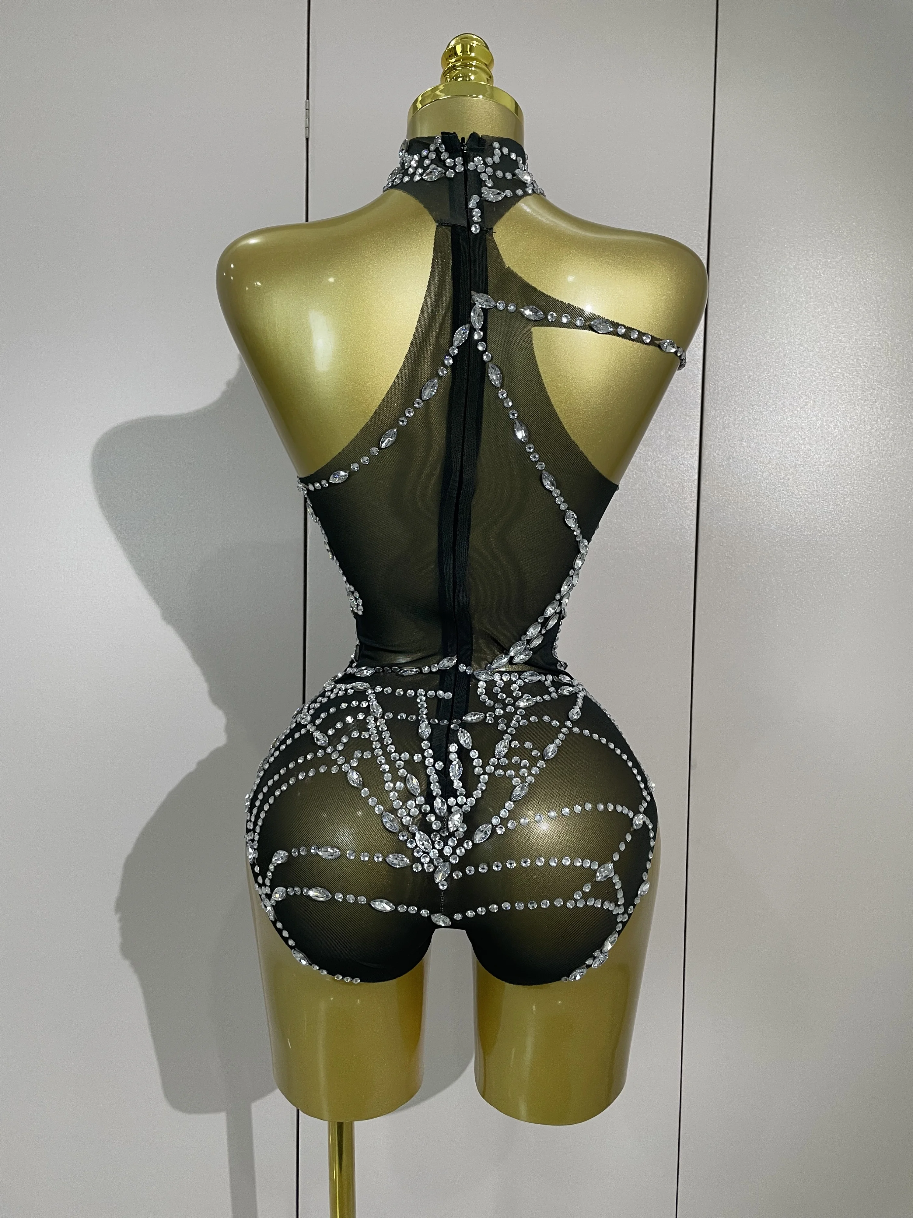 STOCK New Sparkly Diamond Sexy Mesh Stretch Bodysuits Women Evening Nightclub Bar Party Show Gogo Dancer Clothing Stage Costume