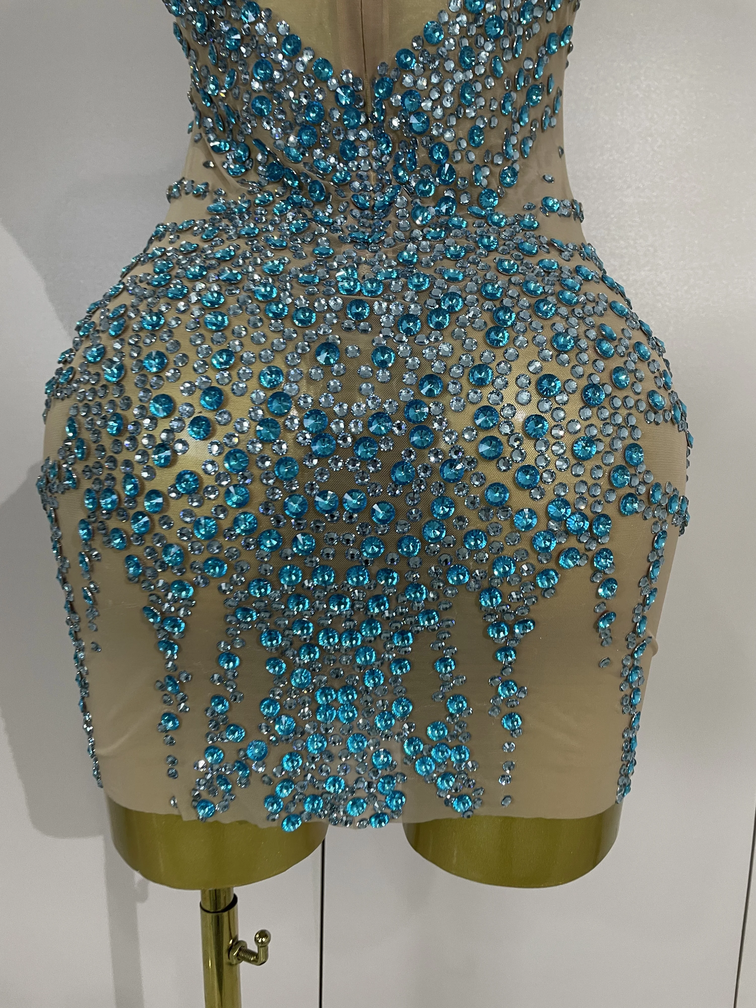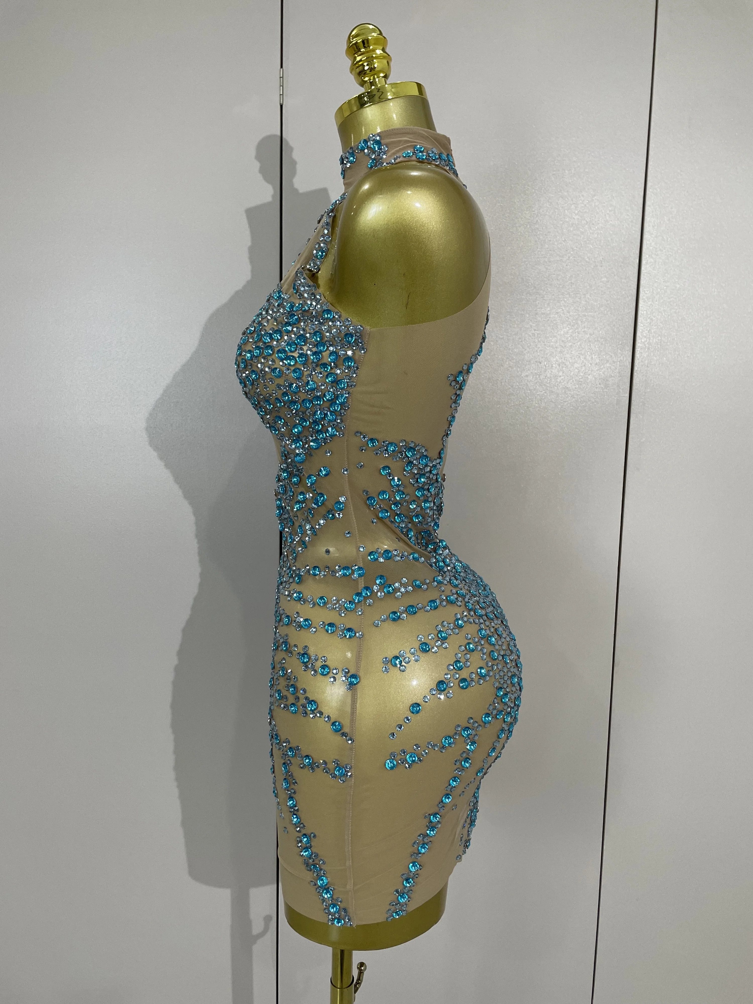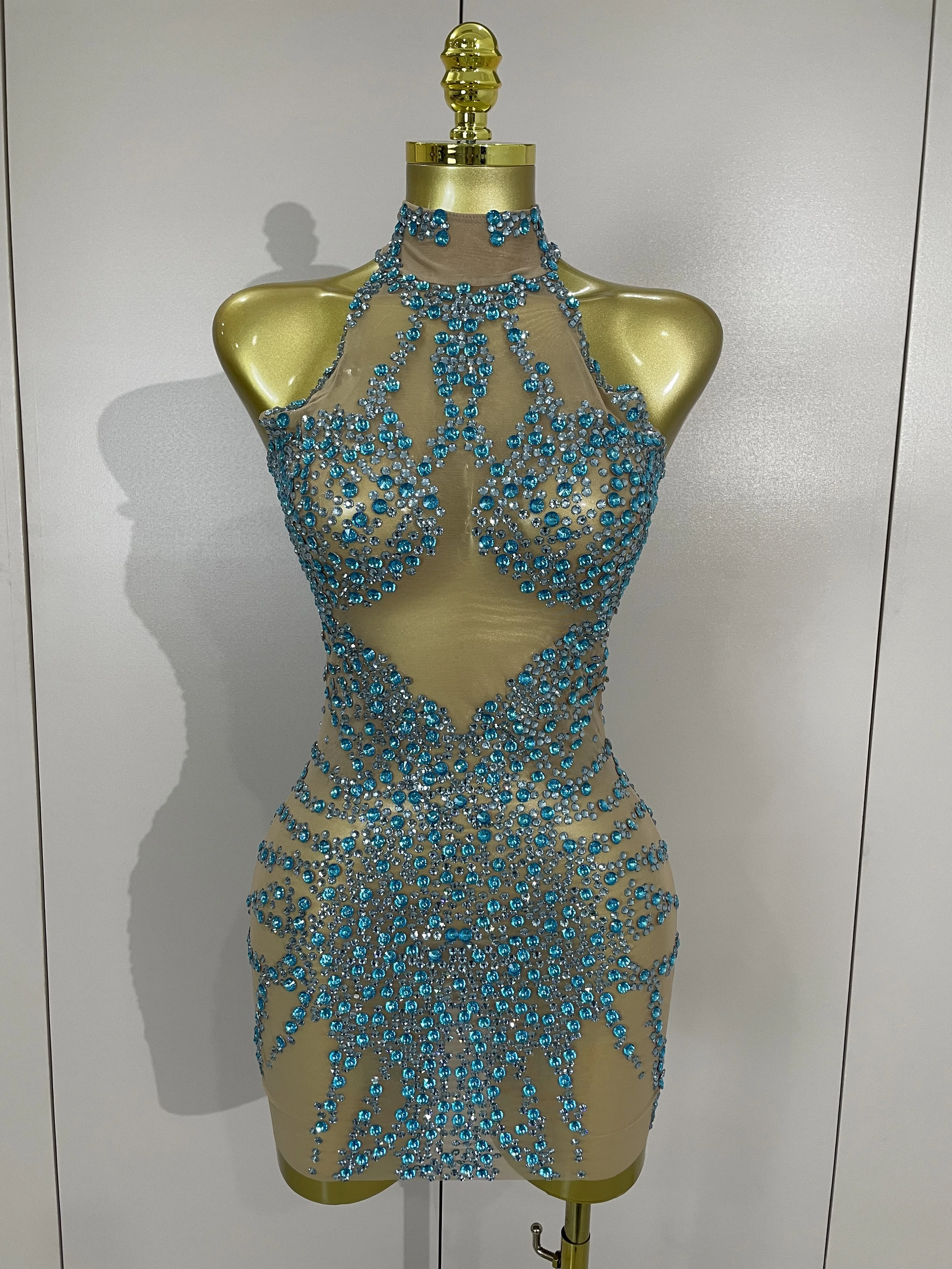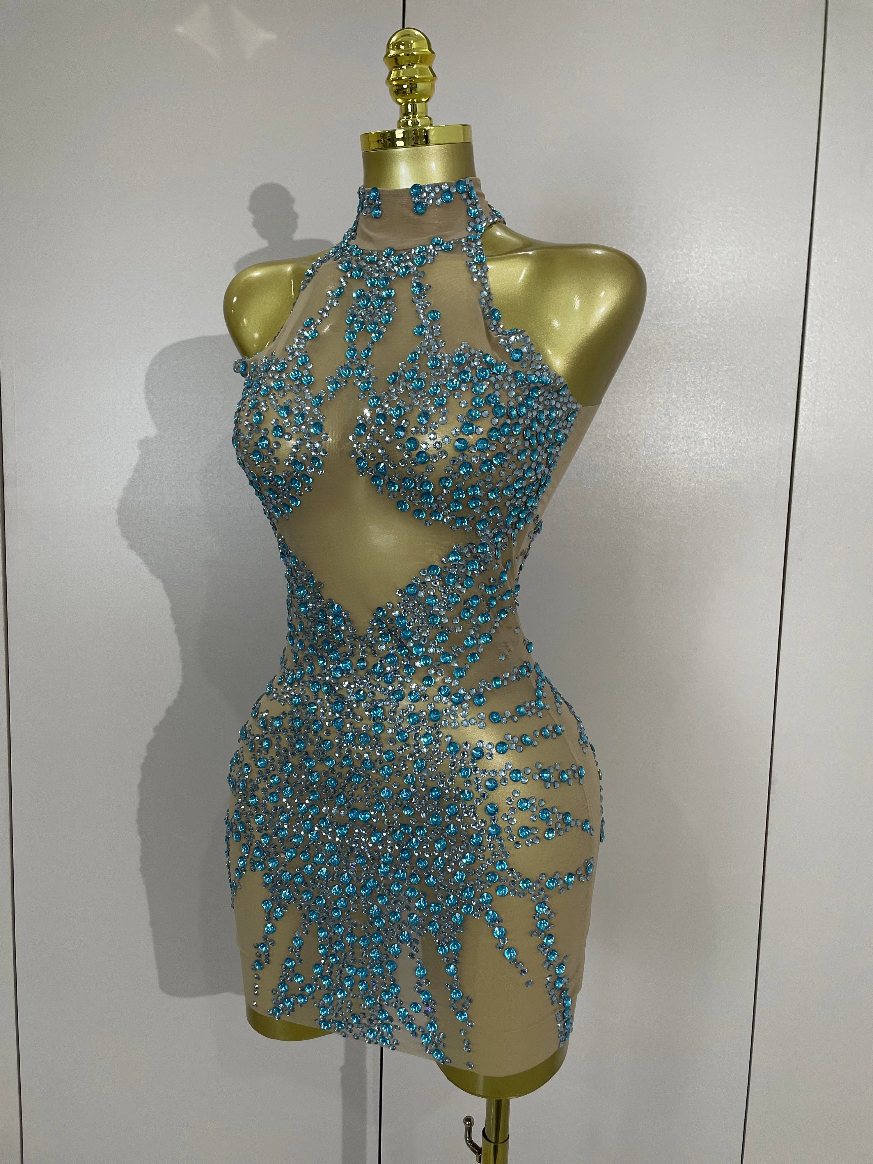 STOCK Sparkly Rhinestones Sexy Mesh See Through Dress Party Evening Prom Celebrate Birthday Dress Singer Dancer Show Stage Wear