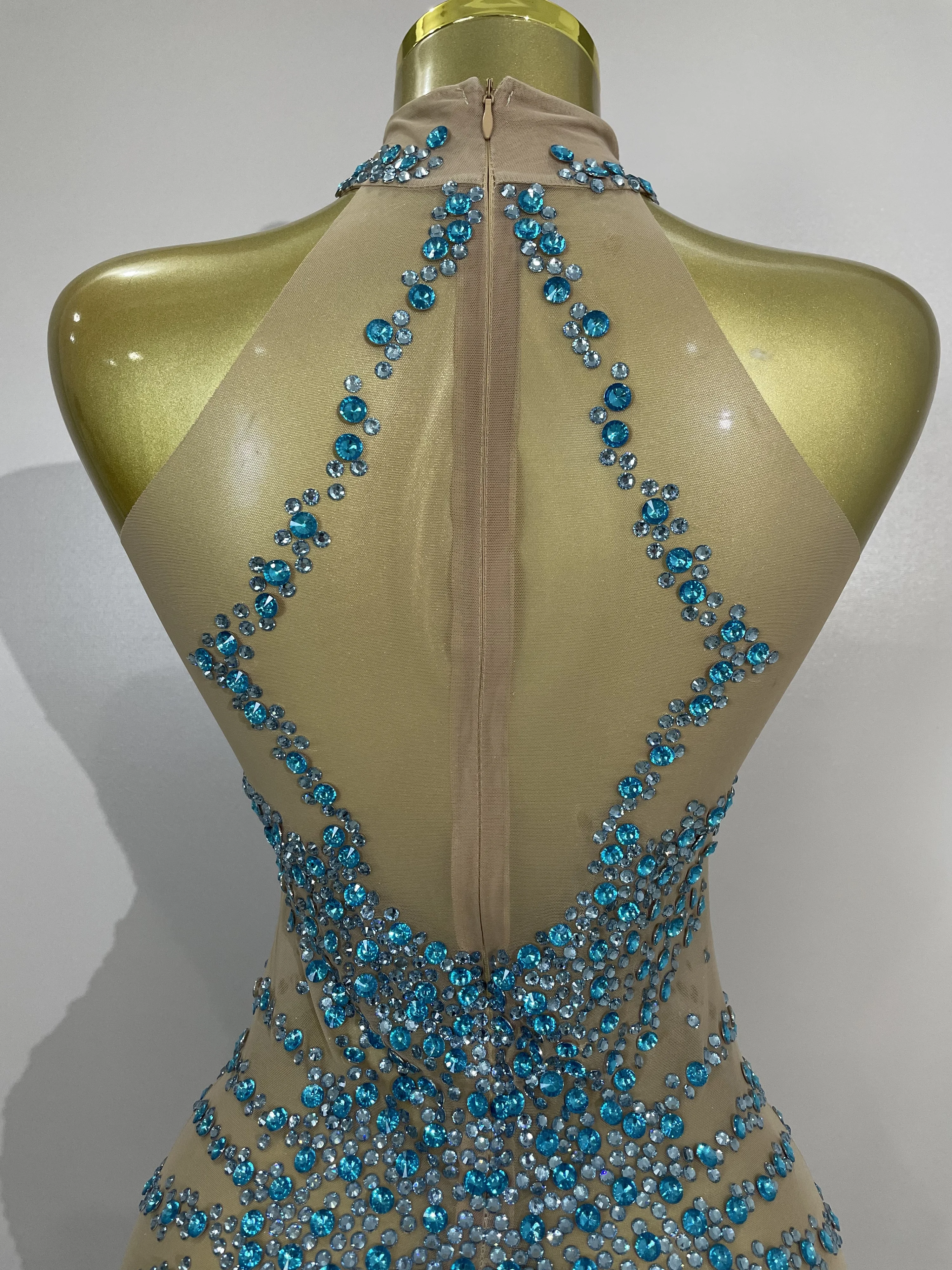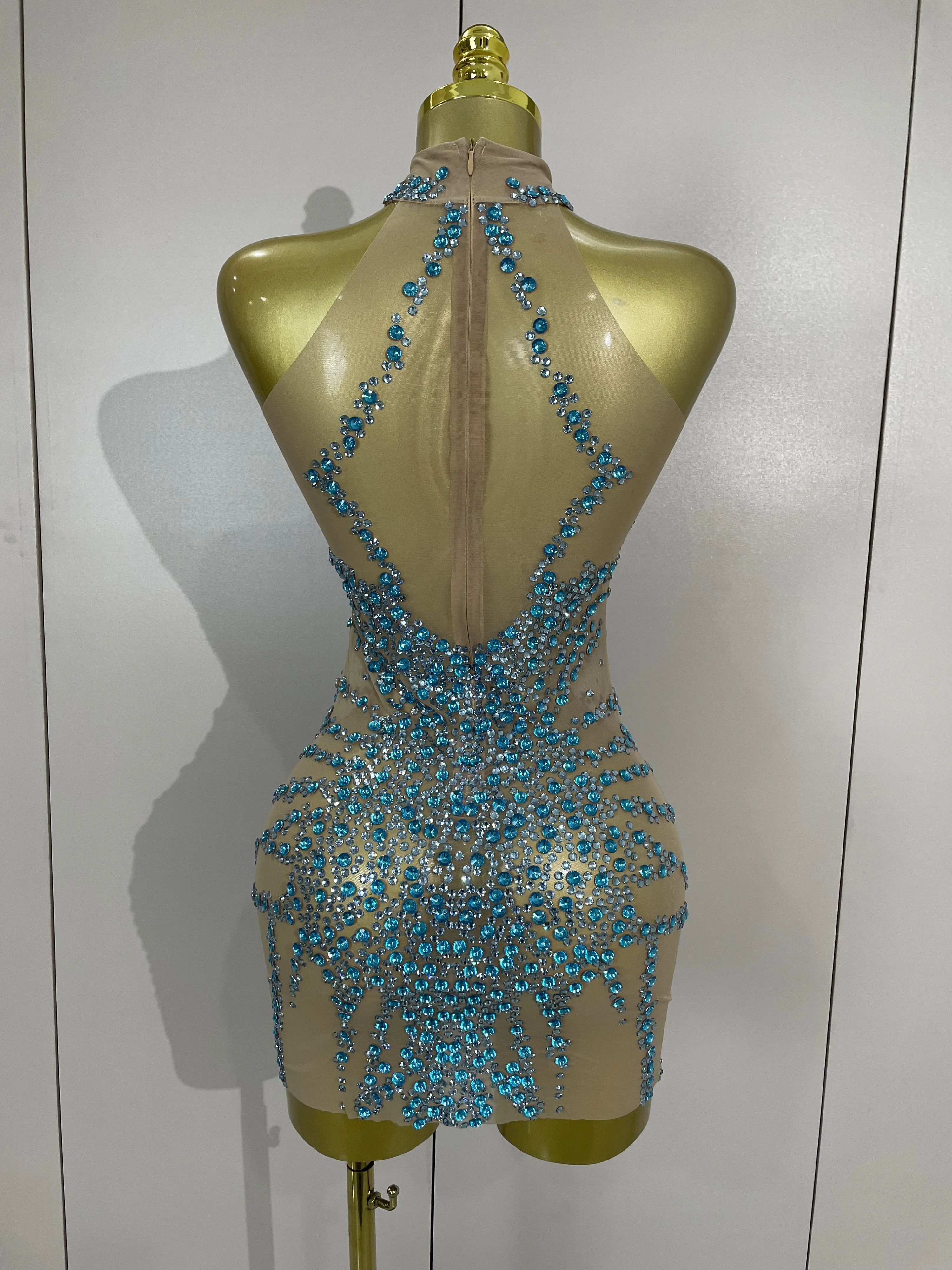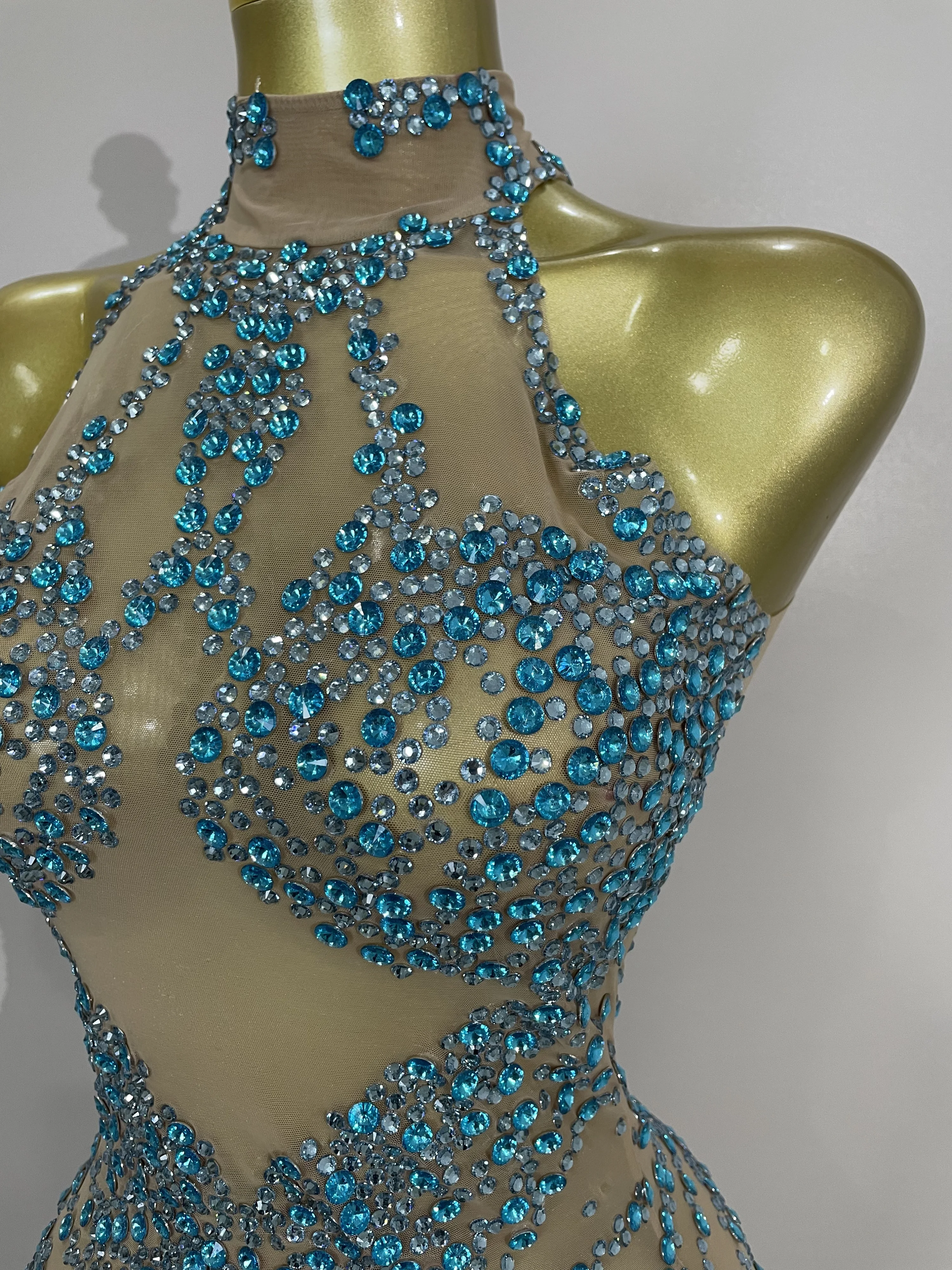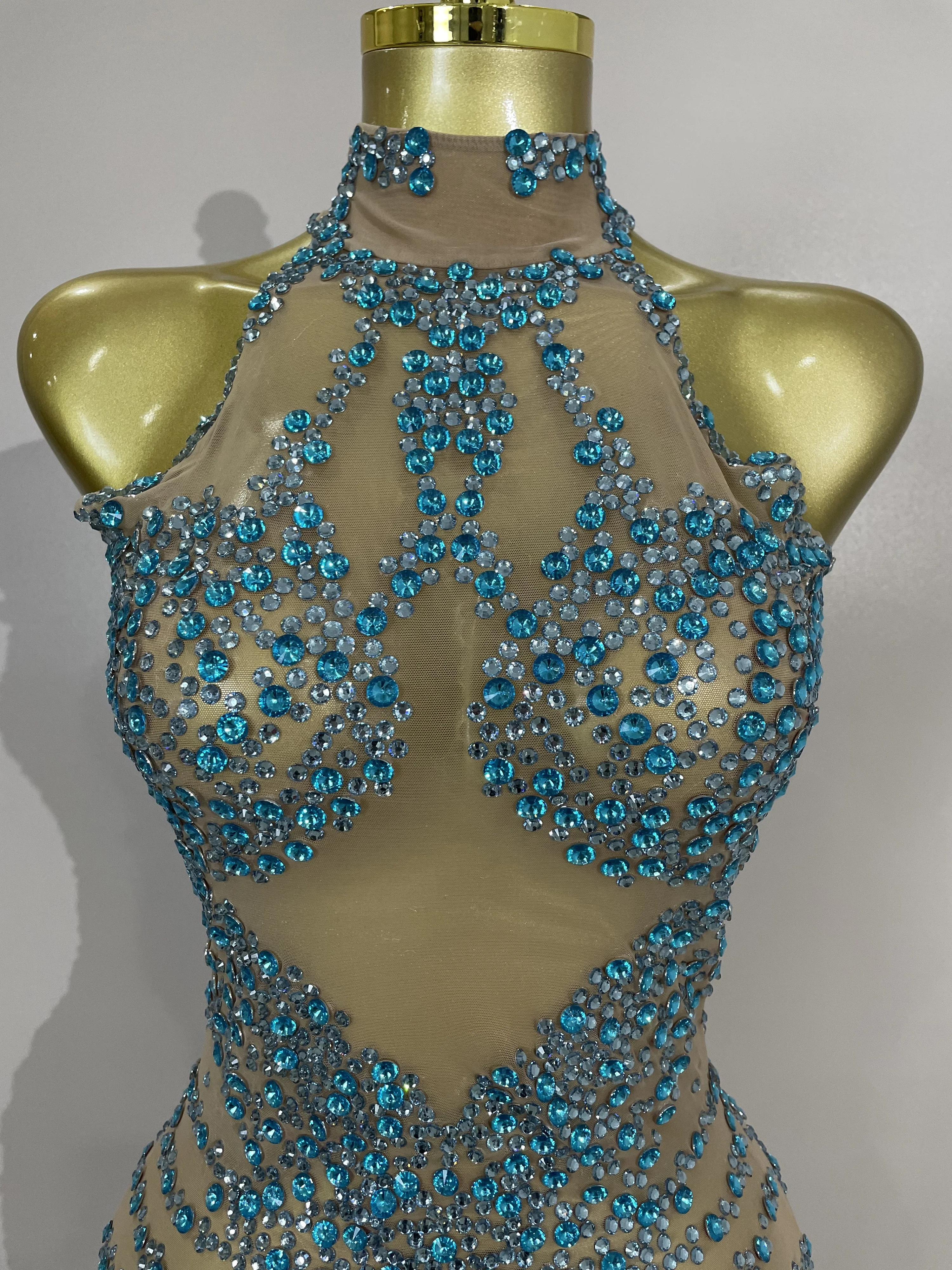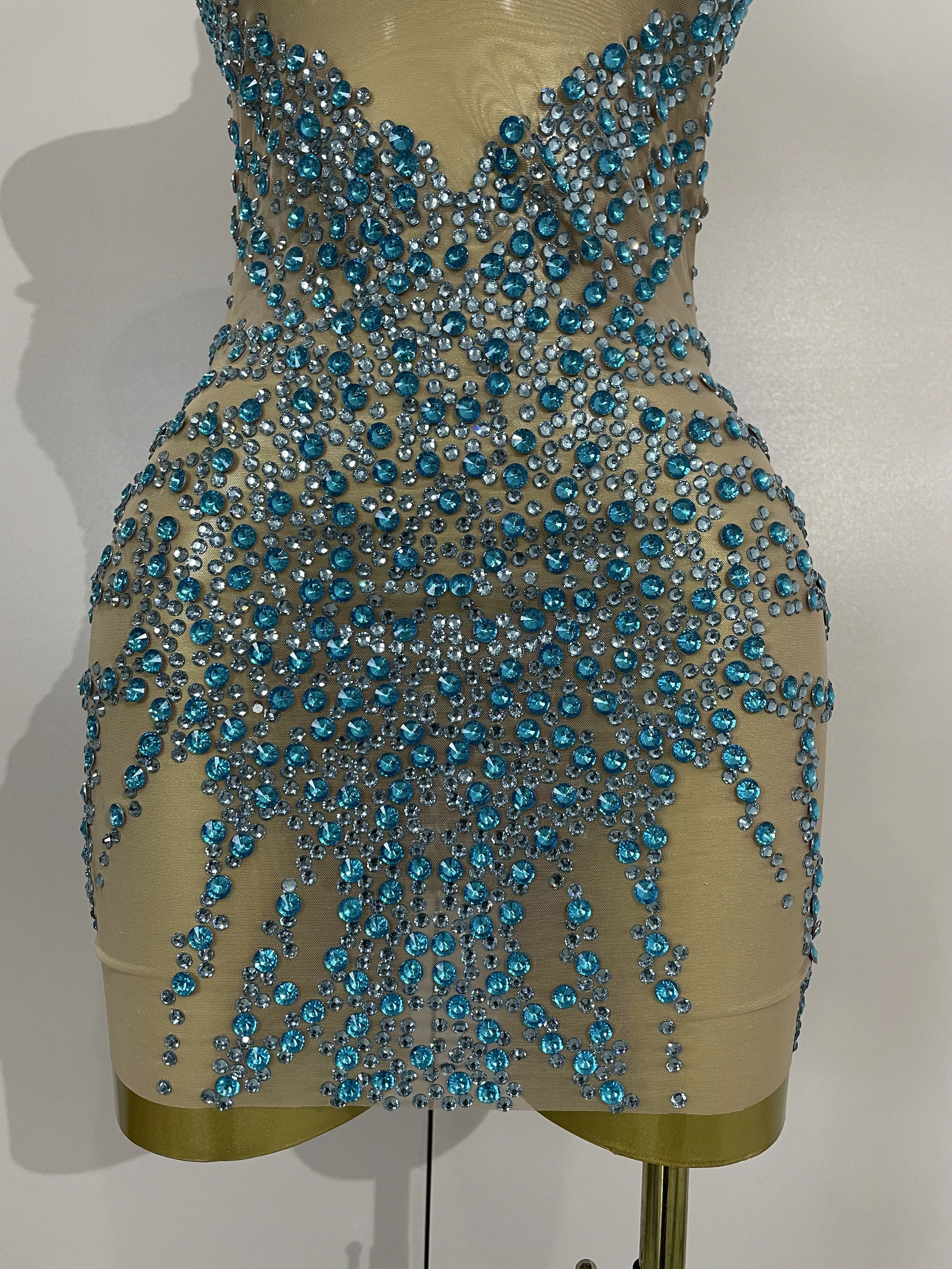STOCK Sparkly Rhinestones Sexy Mesh See Through Dress Party Evening Prom Celebrate Birthday Dress Singer Dancer Show Stage Wear