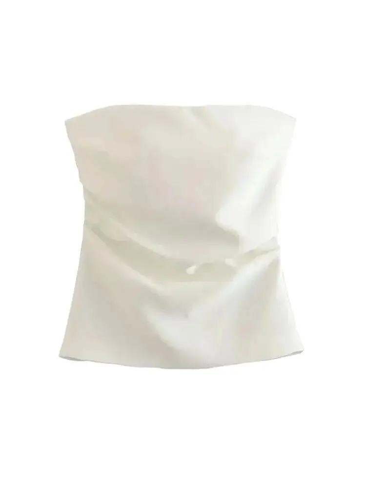 Strapless Draped Bustier Tops for Women, Straight Neck, Back Zipper, Female Camis, Fashion