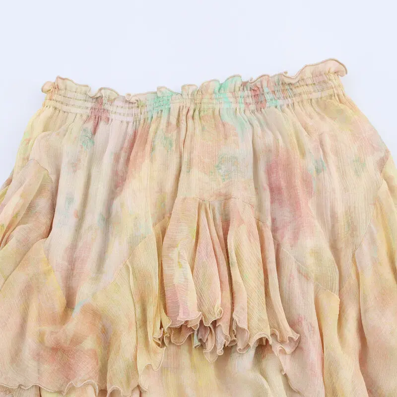 Summer 2025 Long Printed Layered Decorative Skirt Women’s Faion Design High Waist Midi Skirt Floral Patterned Skirts