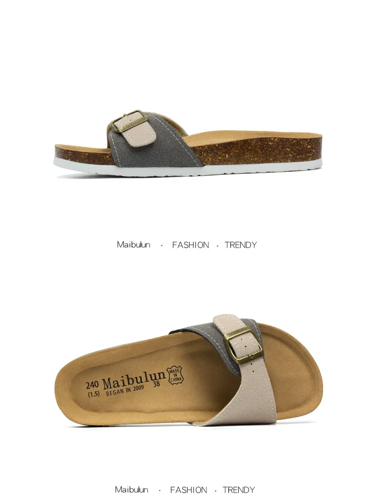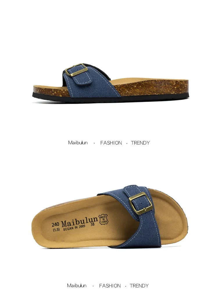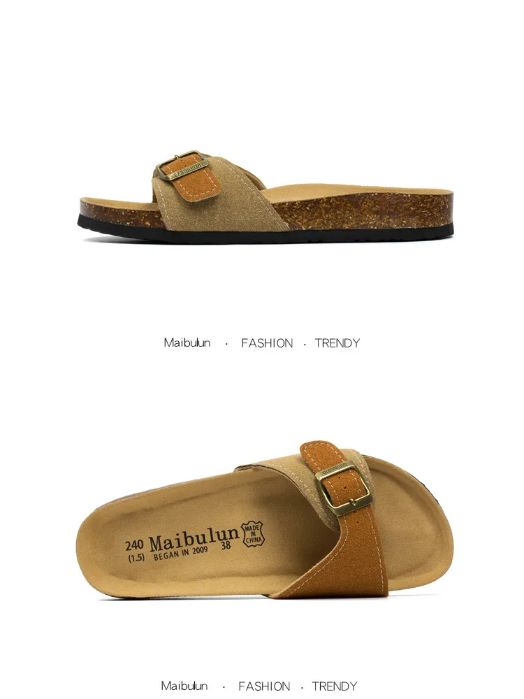 Summer Cork Slippers Men Beach Slides Shoes Woman Flat Low Heels Sandals Casual Flip Flops Cozy Nubuck Leather Clog Shoes Couple
