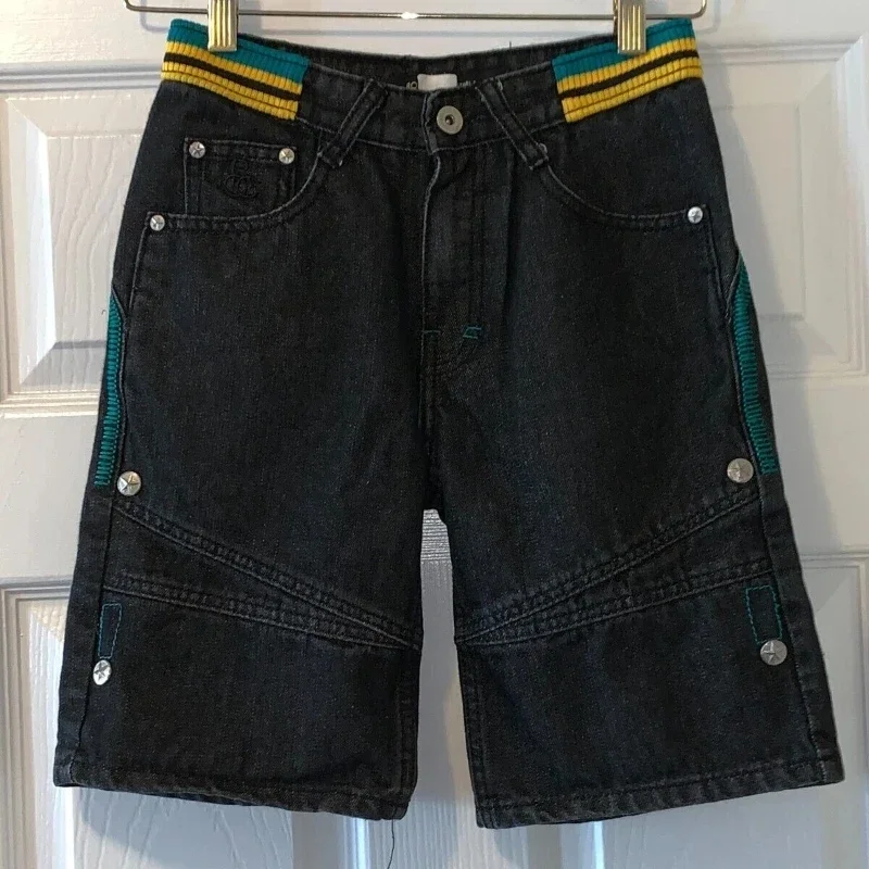 Summer Empyre Dark Blue Skateboard Denim Shorts Patchwork Embroidery Loose Jeans Wide Leg Pants Hip-Hop Rock Street New Pants