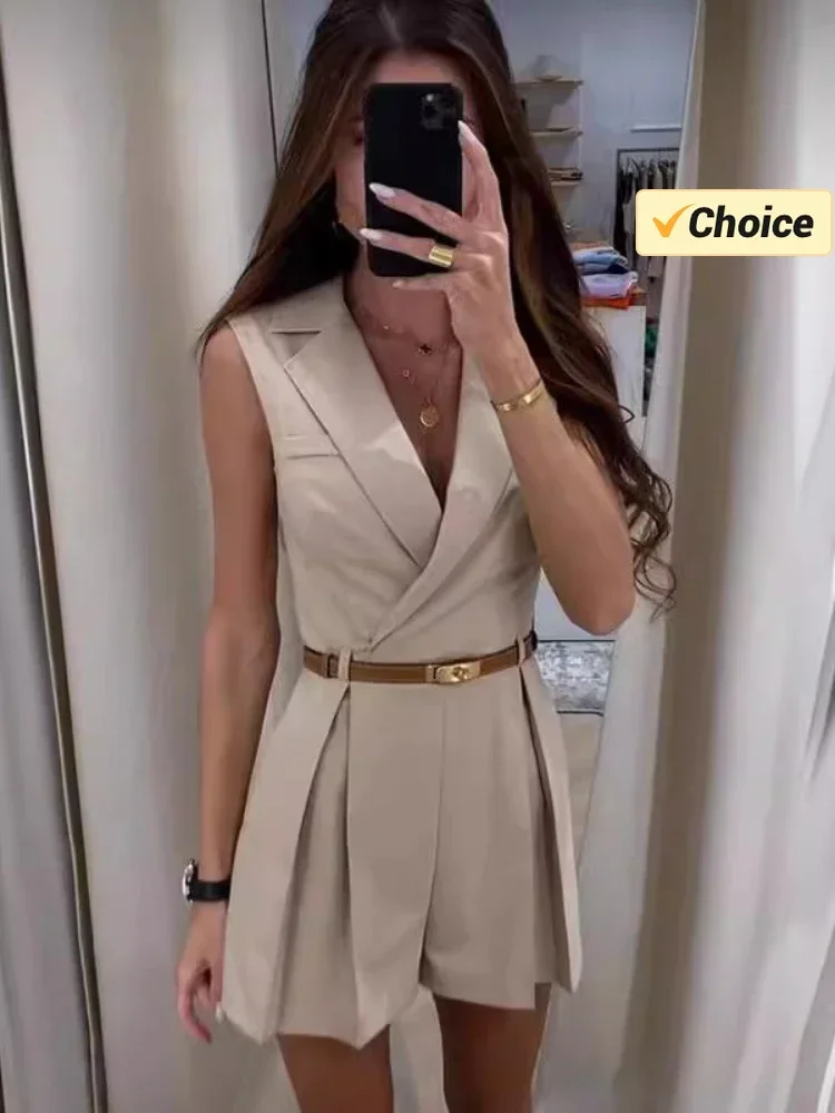 Summer Fashion New Women’s Lapel Suit Jumpsuit OL Professional Commuting Women’s Office Style Shorts Formal Jumpsuit