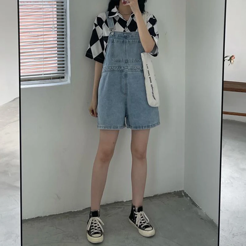 Summer Female Baggy High Waist Denim Overalls Shorts Lady Comfortable Thin Jeans Girls Korean Casual Fashion Short Pants