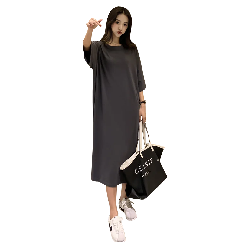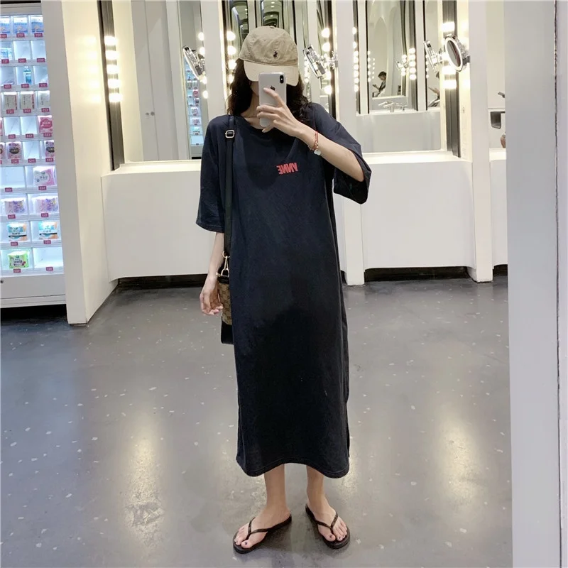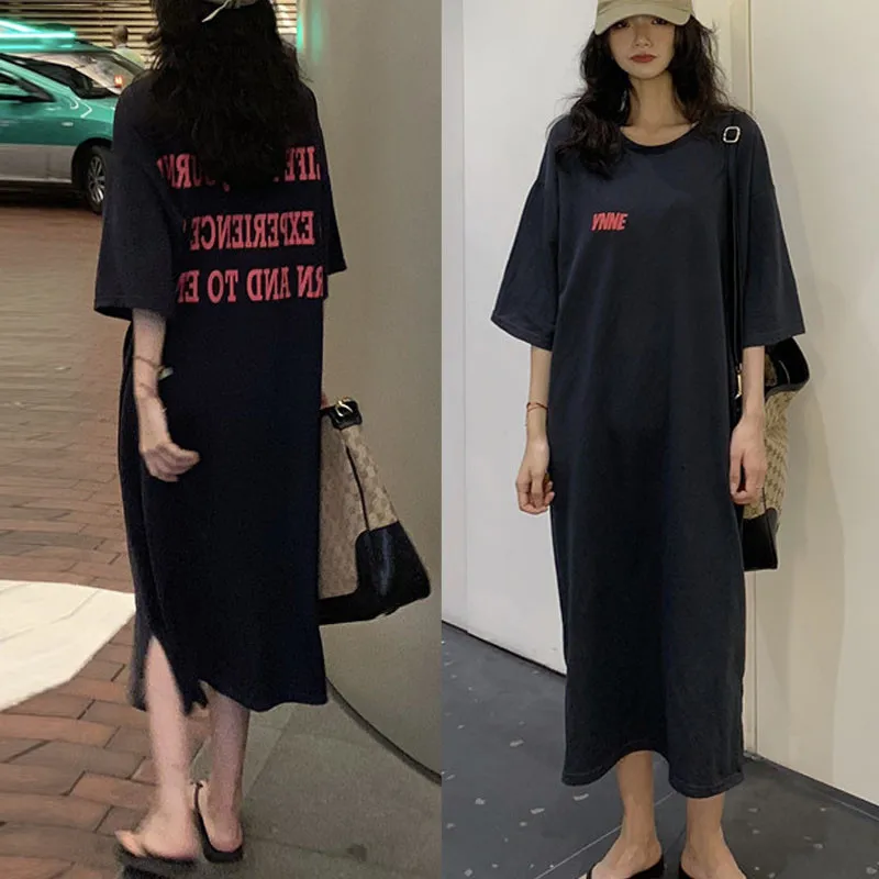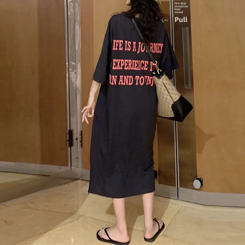 Summer New Faion Long Knee-Length Sp Dr Women’s Loose plus Size Letter Home Clothes Spwear Trendy round Ne ort…