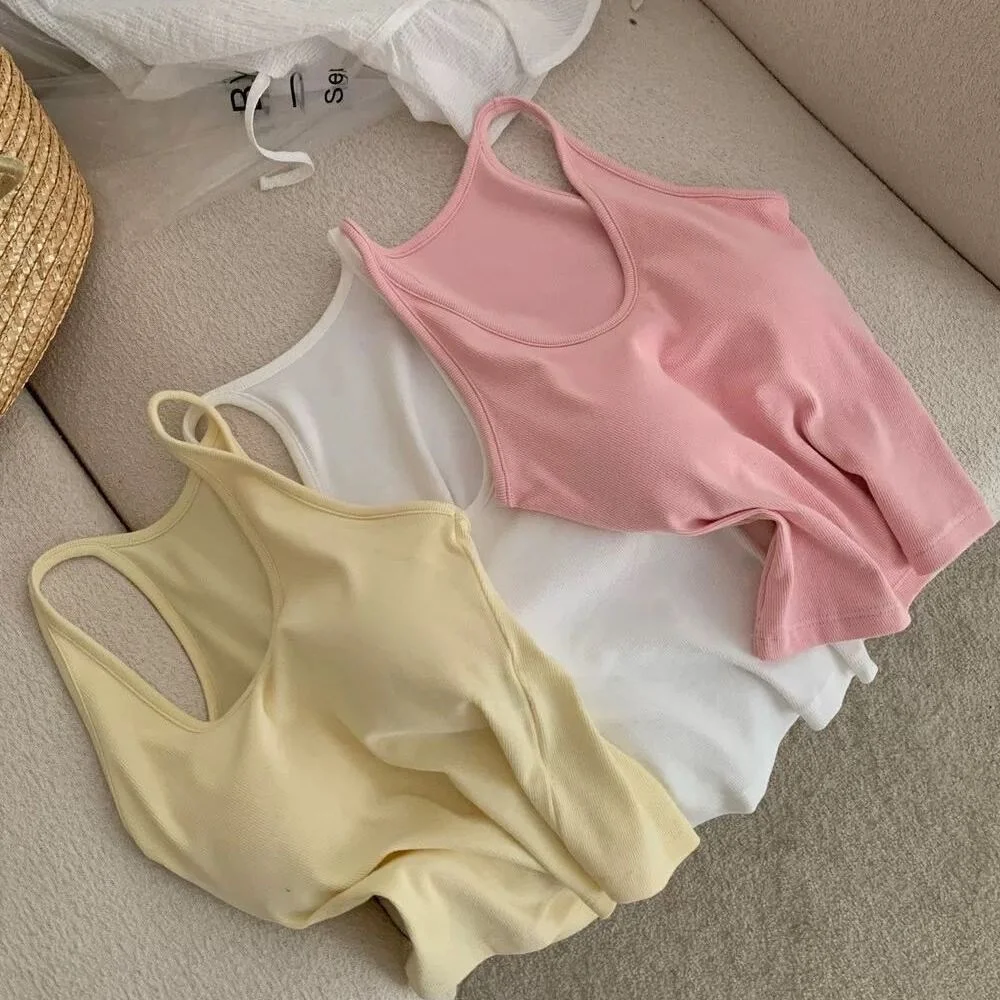 Summer New Sle Sexy Pure Desire Hot Girl Slim Fit Tank Top Women’s Padded Sports Bra Vest U-Ne ort Length Cotton Blend