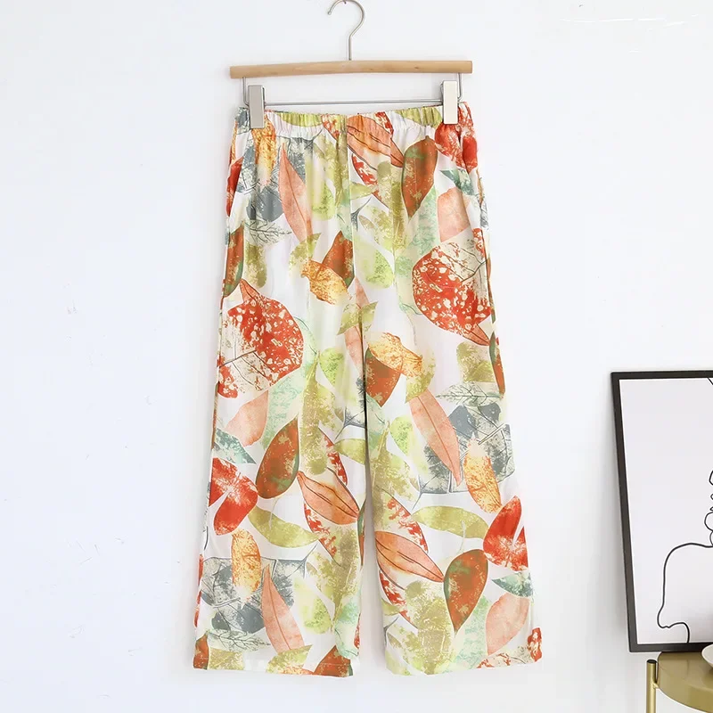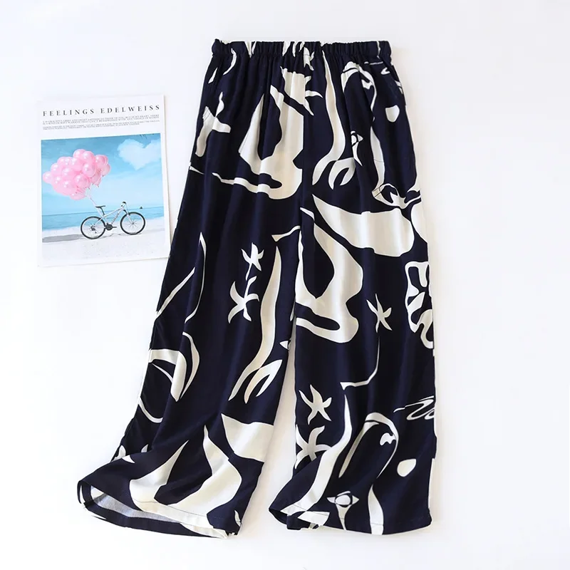Summer new women’s 100% viscose pajama pants cropped pants thin loose wide leg pants home pants pajama plus size cute shorts