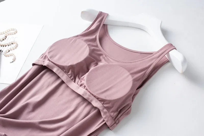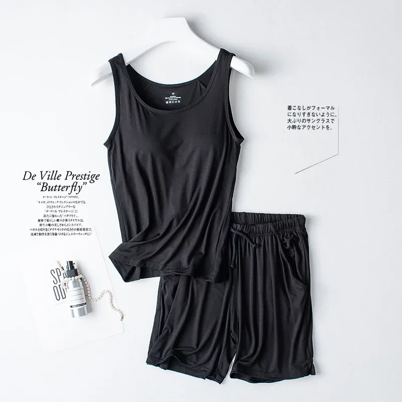 Summer new women’s modal pajamas two-piece vest + shorts with chest pad lingerie seamless cup camisole homewear set pajama