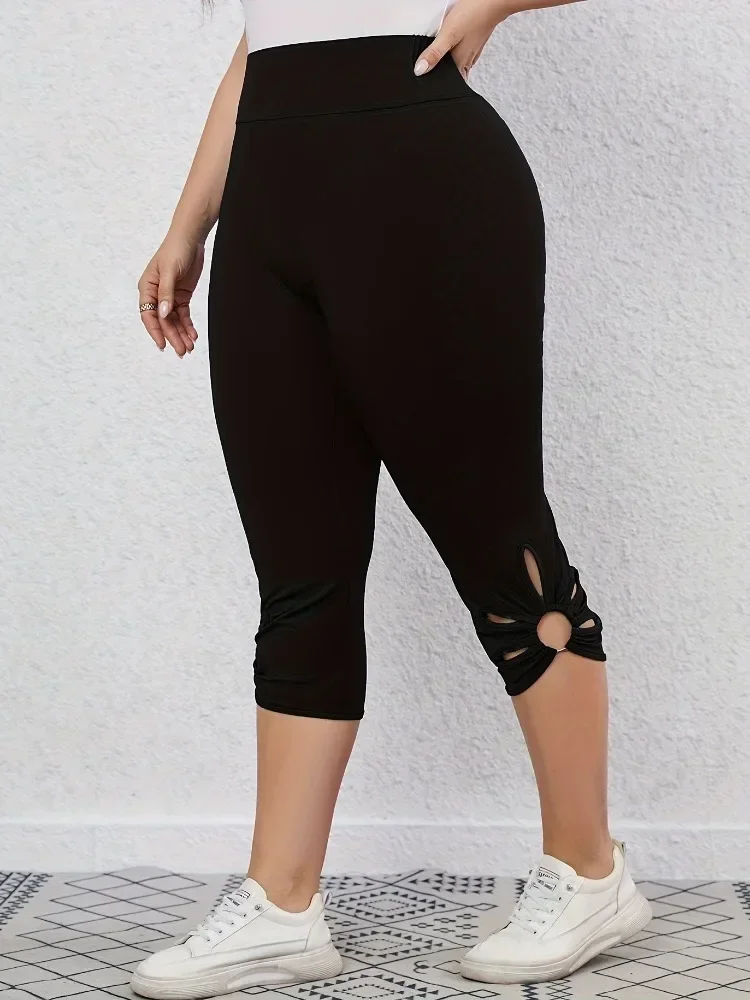 Summer Plus Size S-8XL Women’s High Waisted and High Elastic Tight Pants Hollow Out Solid Color Elegant Yoga Pants Cropped Pants
