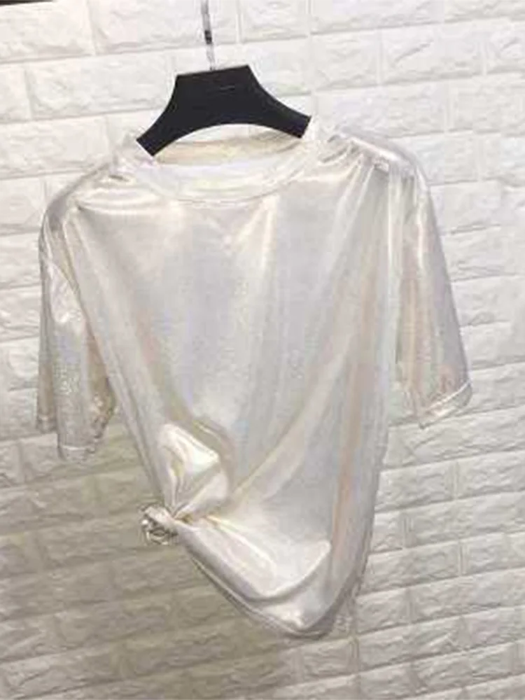 summer woman tops shiny loose short sleeve t-shirt sexy club aesthetic harajuku women stylish bright silk tshirt