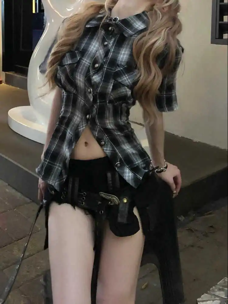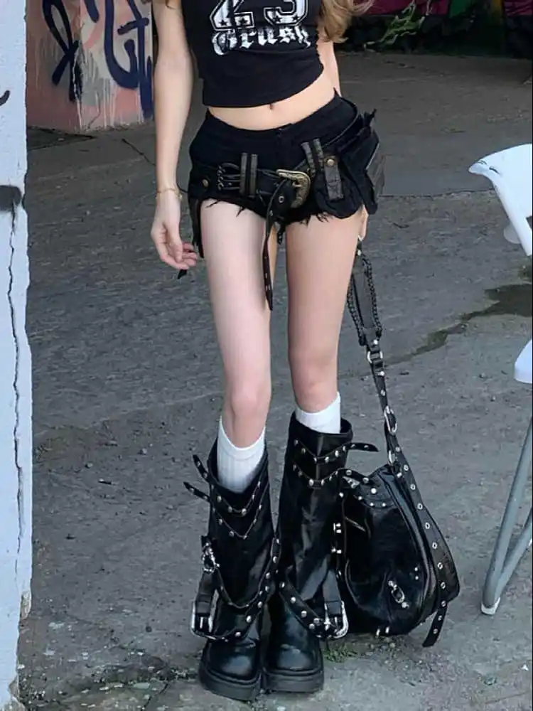 Summer Women Goblin Core Gyaru Coquette Low Rise Denim Shorts With Belt Japanese Harajuku Jean Hot Pants Dark Academia Kpop Y2k