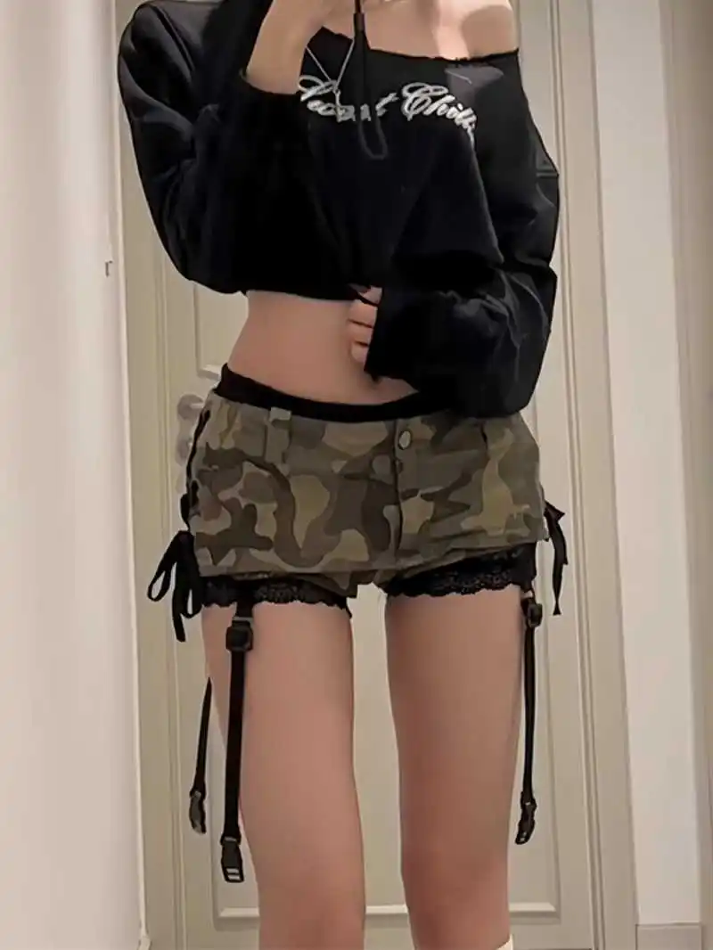 Summer Women Gyaru Coquette Camouflage Culottes Harajuku Shoujo 2000s Aesthetic Low Rise Mini Denim Skirt Korean Y2k Japanese
