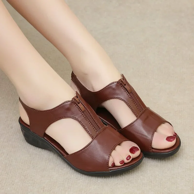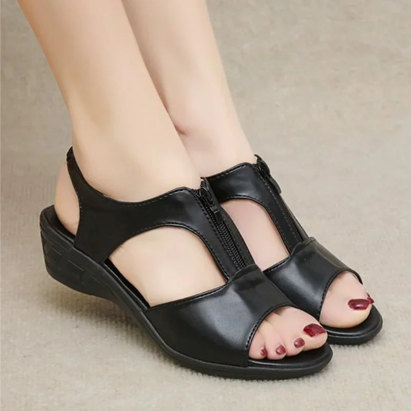 Summer Women’s Sandals Zip Womens Roman Sandals Anti-slip Beach Shoes Wedge Heels Platform Shoes Pu Leather Sandales Femmes Été