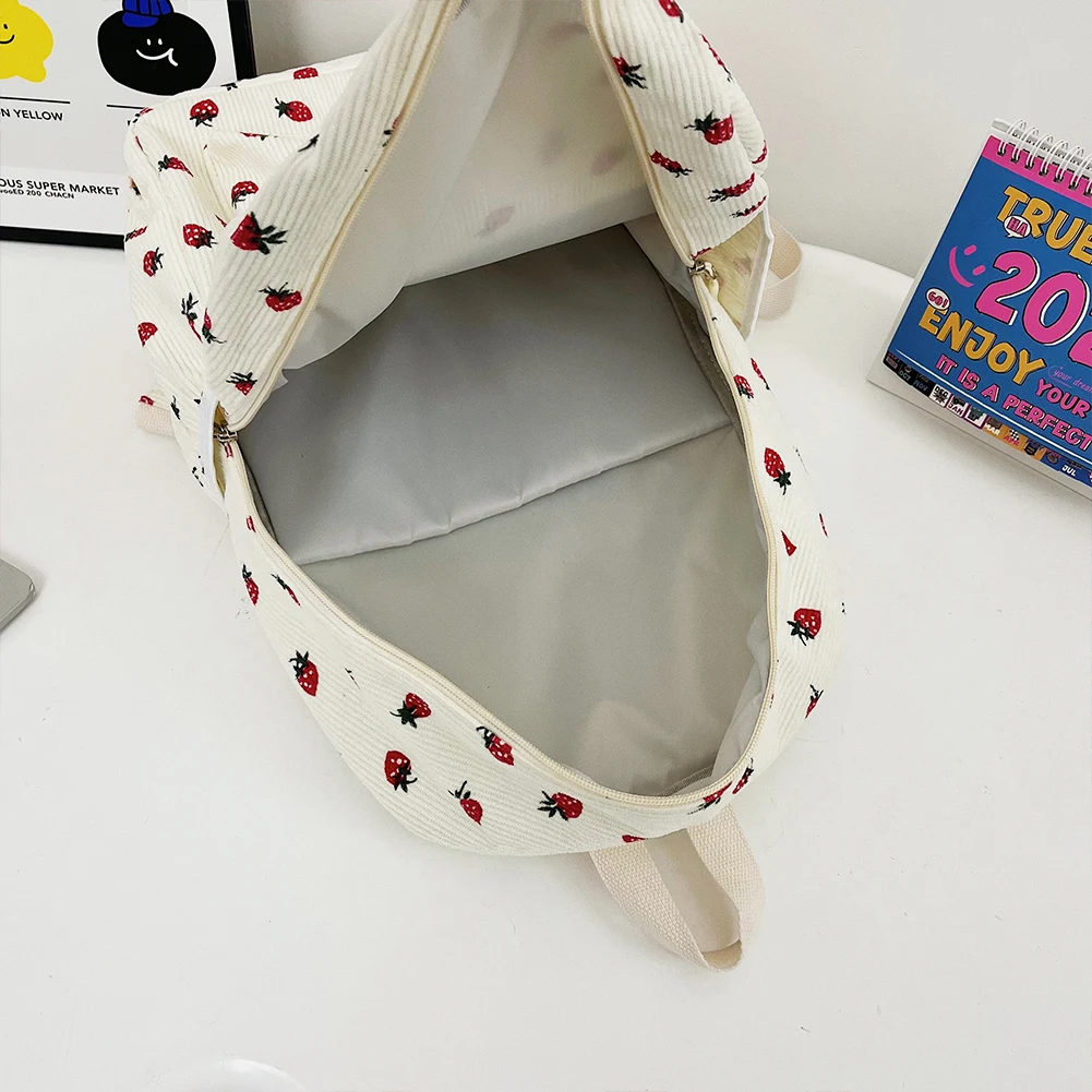 Sweet Corduroy Strawberry Backpacks Casual Travel Rucksack Large Capacity Daily Knapsack Japanese Aesthetic Students School Bag