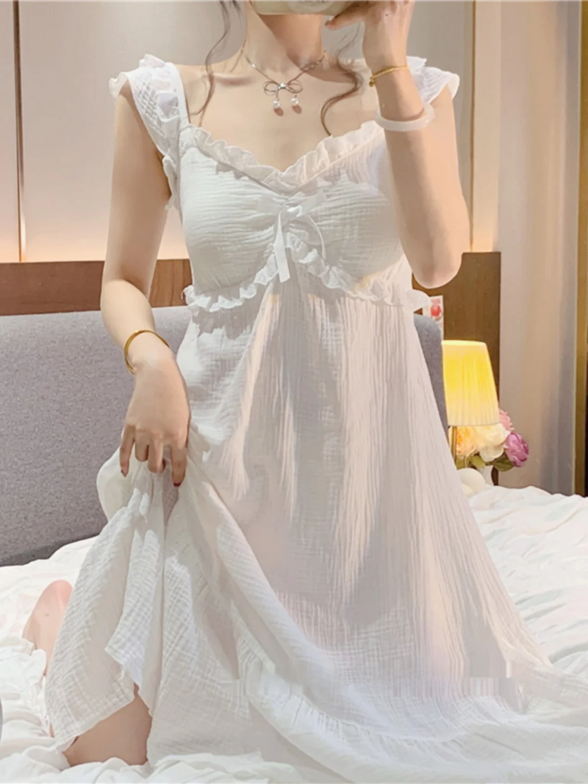 Sweet Pure Desire Sle Women’s Spwear Set with Chest Pad Strap Home Clothes Long Dr V-ne Summer New Arrival