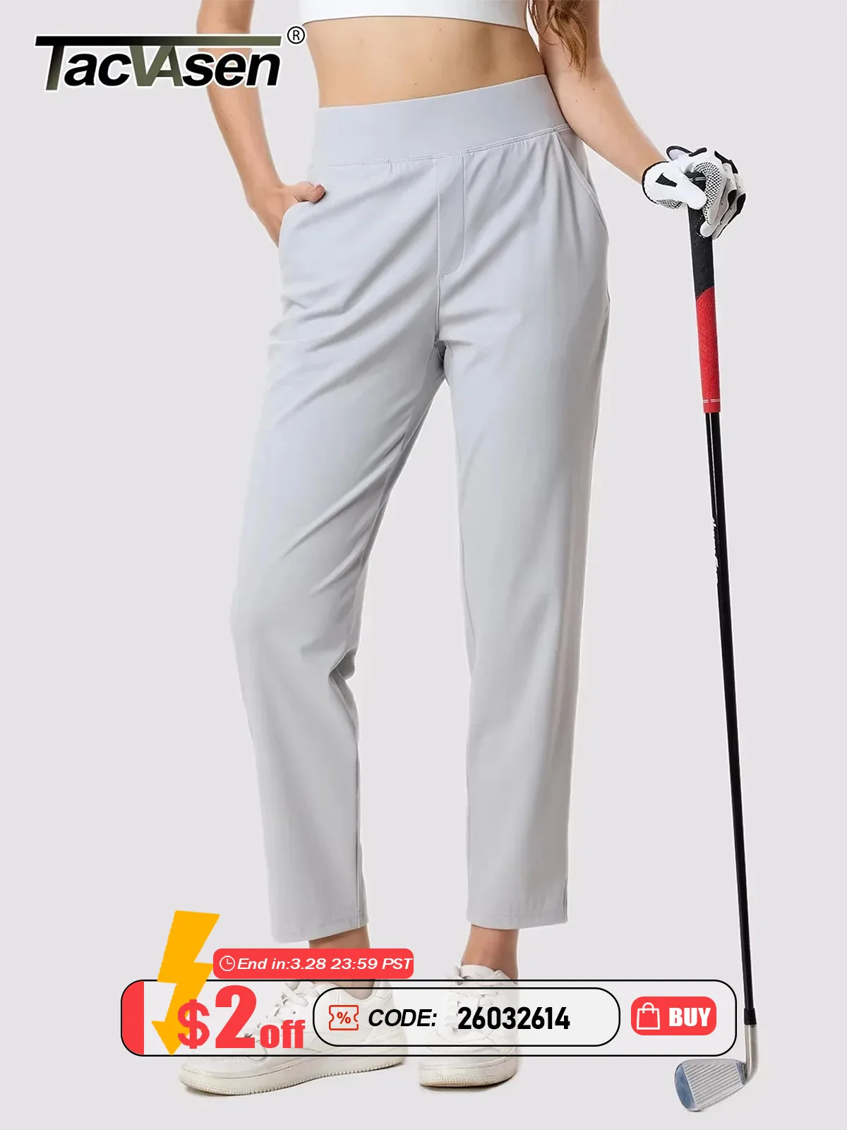 TACVASEN UPF 50+ Golf Pants Women’s Lightweight Quick Dry Stretch Pants High Waisted Work Athletic Casual Pants 5 Pockets